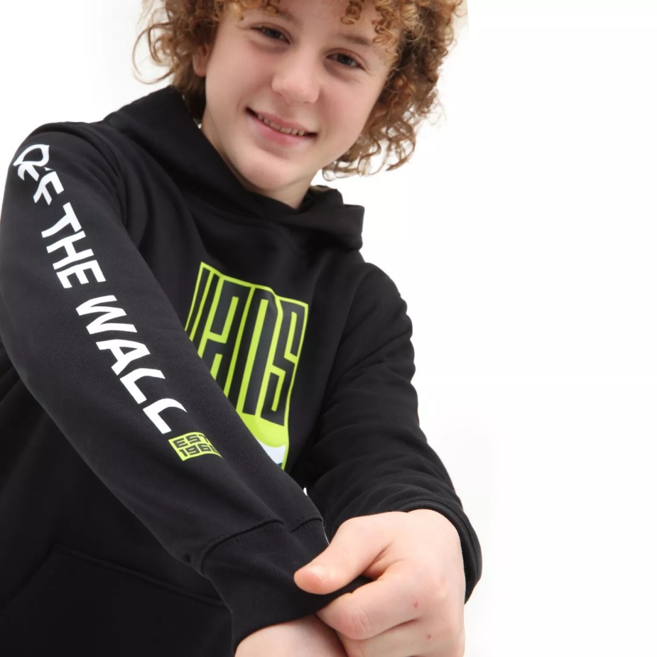 το παιδικό φούτερ πουλόβερ Maze Vans είναι ένα φούτερ με κουκούλα από 60% βαμβάκι, 40% πολυεστέρας πουλόβερ φλις με κλασικό λογότυπο στο κέντρο του στήθους που δίνει ένα νεύμα στο εμβληματικό μας πλάγιο. μια μπροστινή τσέπη και τα γραφικά στο μανίκι στον τοίχο ολοκληρώνουν την χαρακτηριστική εμφάνιση.