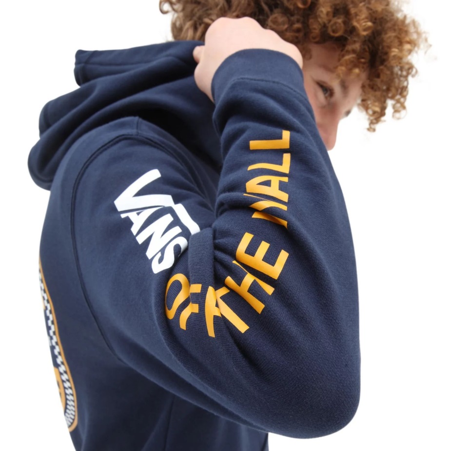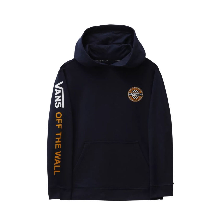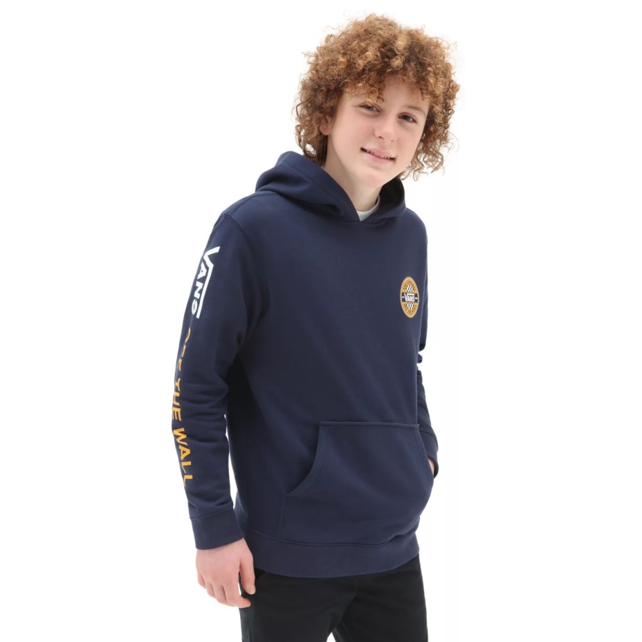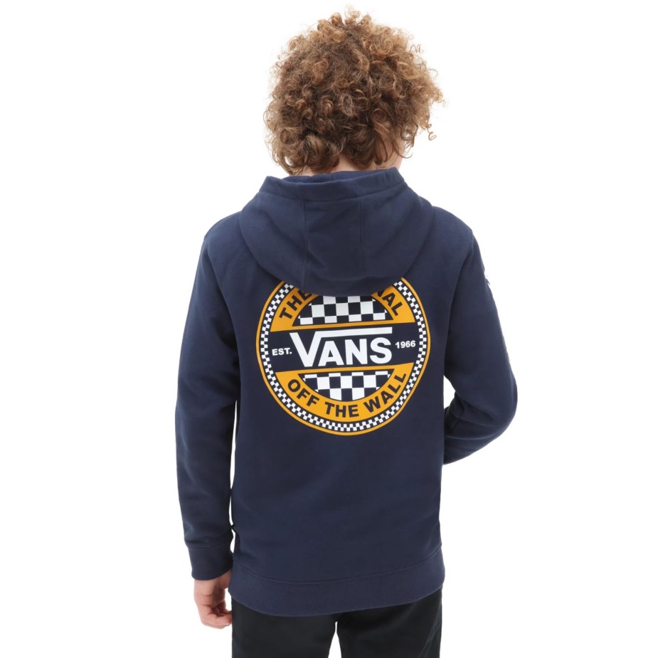 Το κλασικό στυλ με φούτερ με κουκούλα και οι τυπογραφίες με το λογότυπο σκακιέρας με την υπογραφή καθορίζουν το παιδικό πουλόβερ πουλόβερ με κύκλους. κατασκευασμένο από 60% βαμβάκι και 40% φλις πολυεστέρα, αυτό το πουλόβερ φούτερ με κουκούλα διαθέτει επίσης μπροστινή τσέπη και γραφικά λογότυπου στο δεξί μανίκι.