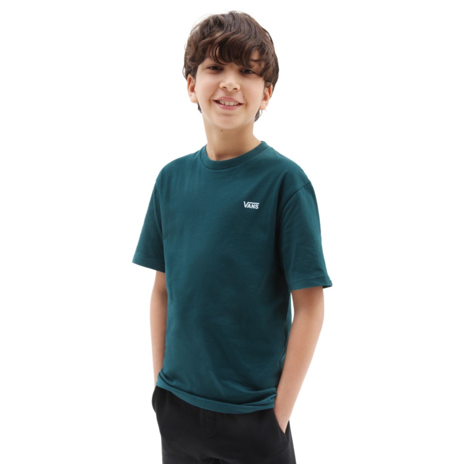 το αριστερό μπλουζάκι στήθους Vans Boys έχει λαιμόκοψη, κοντά μανίκια και το λογότυπο Vans στο αριστερό στήθος.