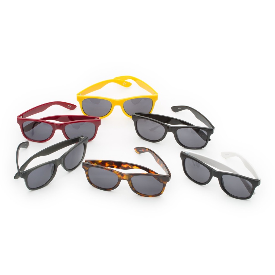τα γυαλιά ηλίου Spicoli είναι 100% πολυανθρακικά γυαλιά ηλίου με φακούς που προστατεύονται από την υπεριώδη ακτινοβολία και ένα ανάγλυφο λογότυπο βαν στο ναό.