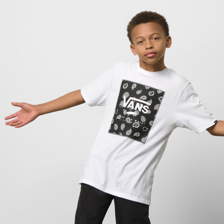 το μπλουζάκι με κουτί με στάμπα για παιδιά δίνει ενέργεια στα κλασικά μας γραφικά με λογότυπα με στάμπα Paisley σε κουτί. αυτό το κοντομάνικο μπλουζάκι είναι κατασκευασμένο από 100% χτενισμένο βαμβάκι.