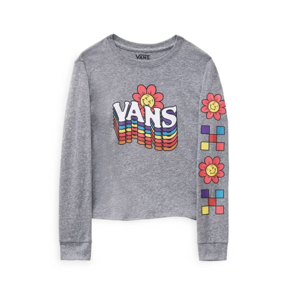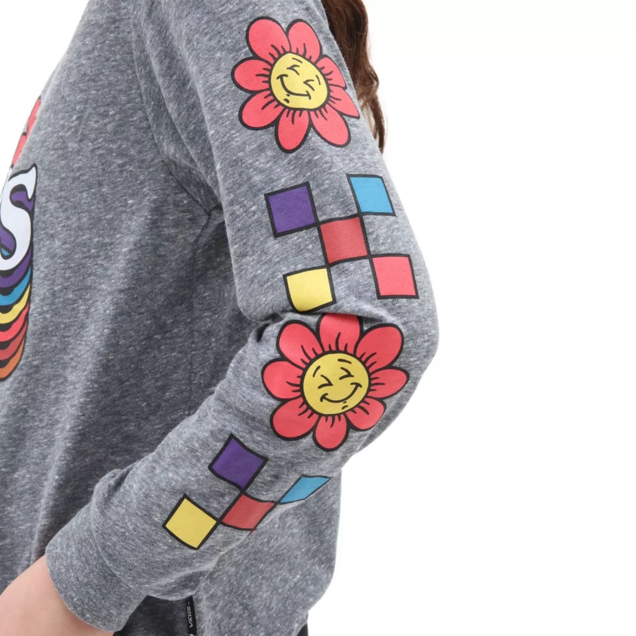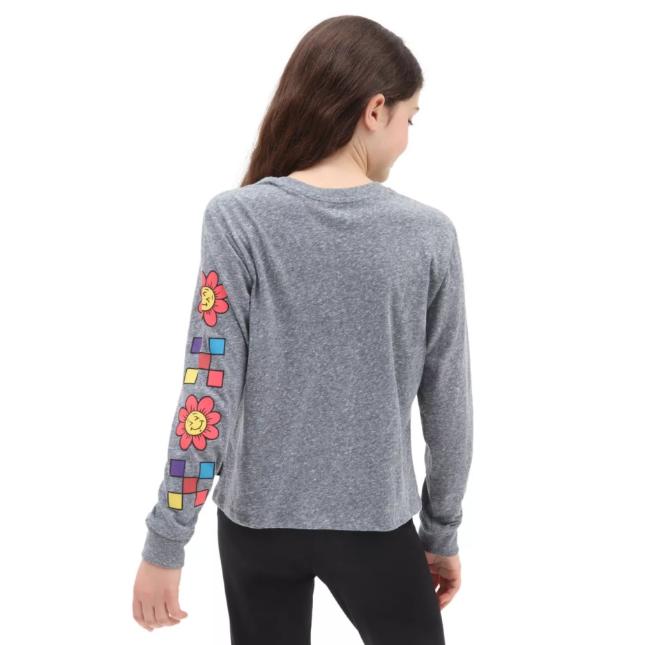 το μακρυμάνικο μπλουζάκι για παιδιά με επαναληπτικό χαμόγελο είναι 50% πολυεστέρας, 38% βαμβάκι και 12% μακρυμάνικο μπλουζάκι από ρεγιόν με πολύχρωμα, ρετρό γραφικά λογότυπο στο μπροστινό μέρος και στο αριστερό μανίκι.