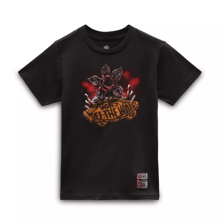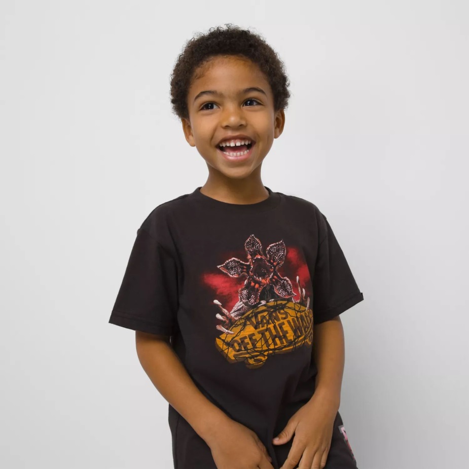 η συλλογή Vans X Stranger Things 4 ζωντανεύει τον κόσμο των ξένων πραγμάτων. Ταξιδέψτε ανάποδα, πίτσα για σέρφερ, Χάκινς Ιντιάνα και πολλά άλλα μέσα από παιχνιδιάρικα ρούχα και υποδήματα βαν. με το Demogorgon μπροστινό μέρος και το κέντρο, το μπλουζάκι με μικρά παιδιά με βαν και ξένα πράγματα συνδυάζει το εμβληματικό λογότυπο του Skateboard με το αυθεντικό τέρας που στοιχειώνει οι ήρωες των Χόκινς. αυτό το κοντομάνικο μπλουζάκι είναι κατασκευασμένο από 100% βαμβάκι και περιλαμβάνει μια προσαρμοσμένη ετικέτα με το λογότυπο συνεργασίας στο αριστερό στρίφωμα, διασφαλίζοντας ότι είστε πάντα από τον τοίχο και ανάποδα, έτοιμοι για την επόμενη επική σας περιπέτεια. Απλώς πιάστε την ομάδα των καλύτερων φίλων σας, μια βάφλα(σόλα) και ετοιμαστείτε να οδηγηθείτε στον κόσμο των φορτηγών X ξένων πραγμάτων 4.