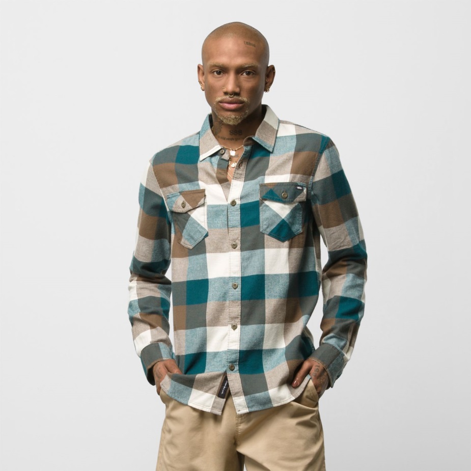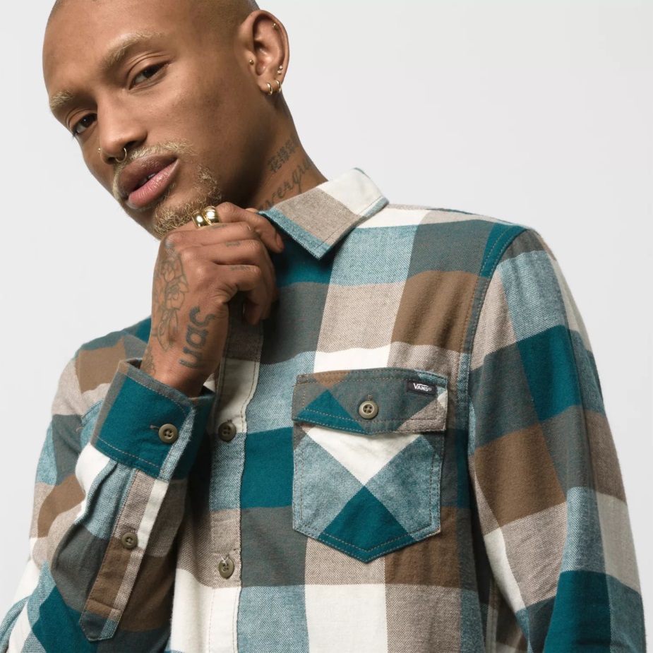 ένα μεγάλο μοτίβο φανελένιο κουτί με σπασμένο ψαροκόκκαλο ξεχώριζε το κουτί φανελένιο πουκάμισο από άλλα καρό. φτιαγμένο με μαλακό οργανικό βαμβάκι, αυτό το κλασικό μακρύ μανίκι κουμπί με διπλές τσέπες στο στήθος είναι ένα ευέλικτο βασικό στοιχείο που απλώνεται εύκολα ή φοριέται μόνο του.