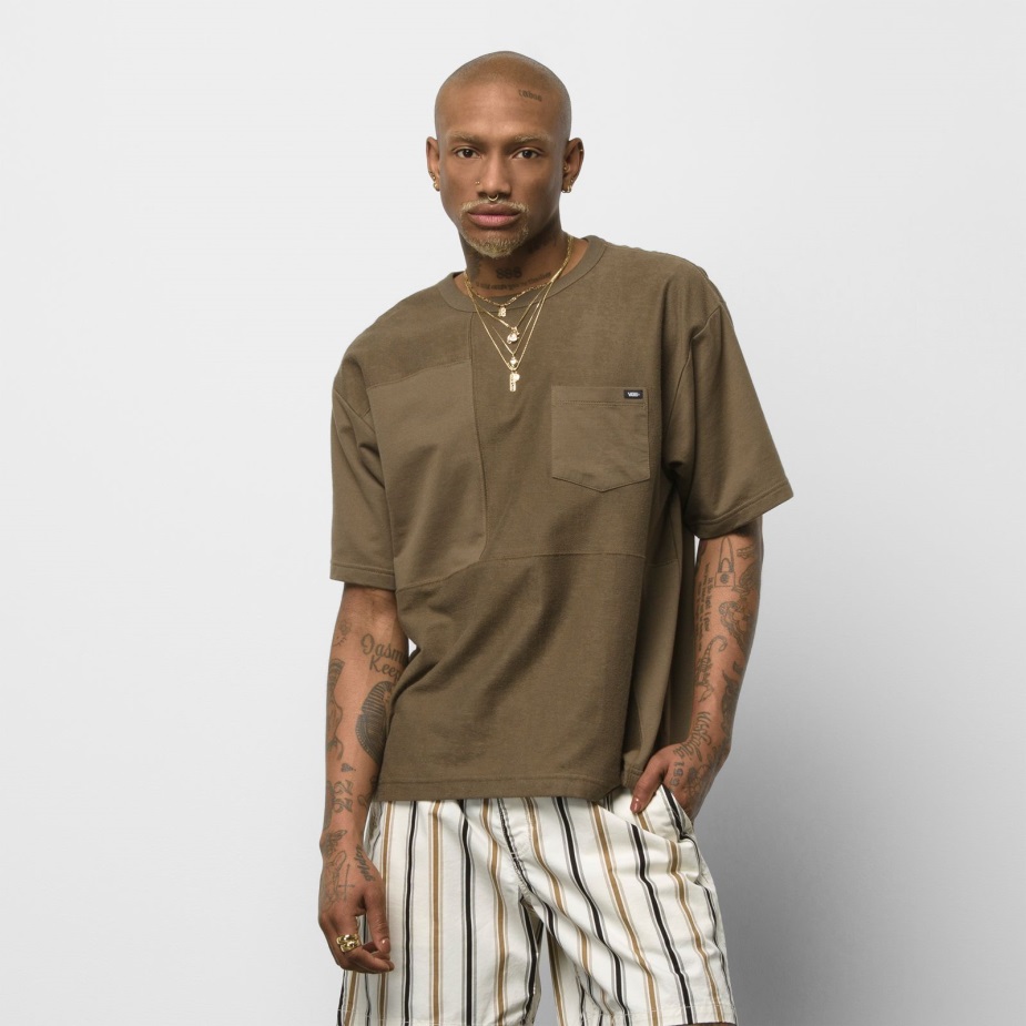 το πουκάμισο Gainsway είναι ένα 100% βαμβακερό ανάποδο γαλλικό μπλουζάκι με κοντό μανίκι και παντελόνι σχέδιο συνονθύλευμα. η μπροστινή αριστερή τσέπη στο στήθος προσθέτει την κομματιασμένη εμφάνιση. Το μοντέλο έχει ύψος 6 πόδια και φοράει μεσαίο μέγεθος.