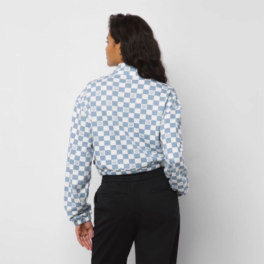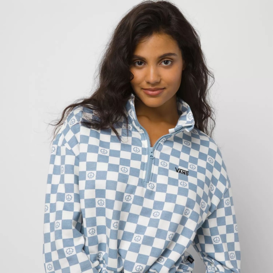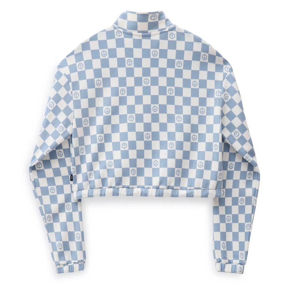 το αριστερό φούτερ με μισό φερμουάρ με στάμπα στο στήθος είναι ένα φούτερ πουλόβερ από 60% βαμβάκι, 40% πολυεστέρας με στάμπα σκακιέρας που αντισταθμίζεται από διάσπαρτα σημάδια ειρήνης. Μαζί με κομμένη μπλούζον εφαρμογή και μακέτα με φερμουάρ στο λαιμό, οι ψηλές λεπτομέρειες σε αυτό το φούτερ περιλαμβάνουν μπάντζι και μπαρέτα στη μέση, ελαστικά μανίκια και κέντημα με λογότυπο στο αριστερό στήθος.