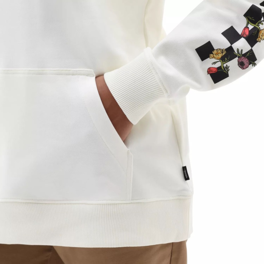 Η μακρυμάνικη κουκούλα Vans Wyld Tangle Poppy Bff έχει μια μπροστινή τσέπη και το λογότυπο του Vans στο μπροστινό μέρος. Διαθέτει επίσης σκακιέρα και λουλουδάτο μοτίβο κάτω από τα δύο μανίκια.