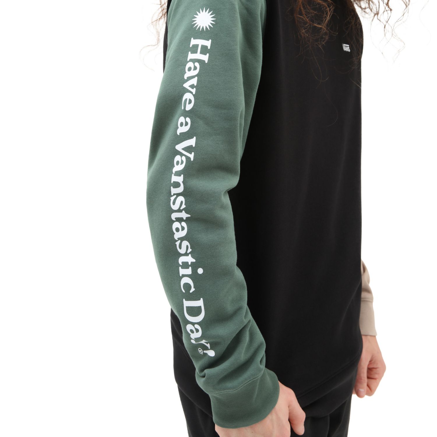 το Vanstastic απέναντι μακρυμάνικο μπλουζάκι έχει λαιμόκοψη και μανίκια αντίθεσης. υπάρχουν γραφικά με λογότυπο φορτηγών στο δεξί μπράτσο και το λογότυπο φορτηγών στο αριστερό στήθος.