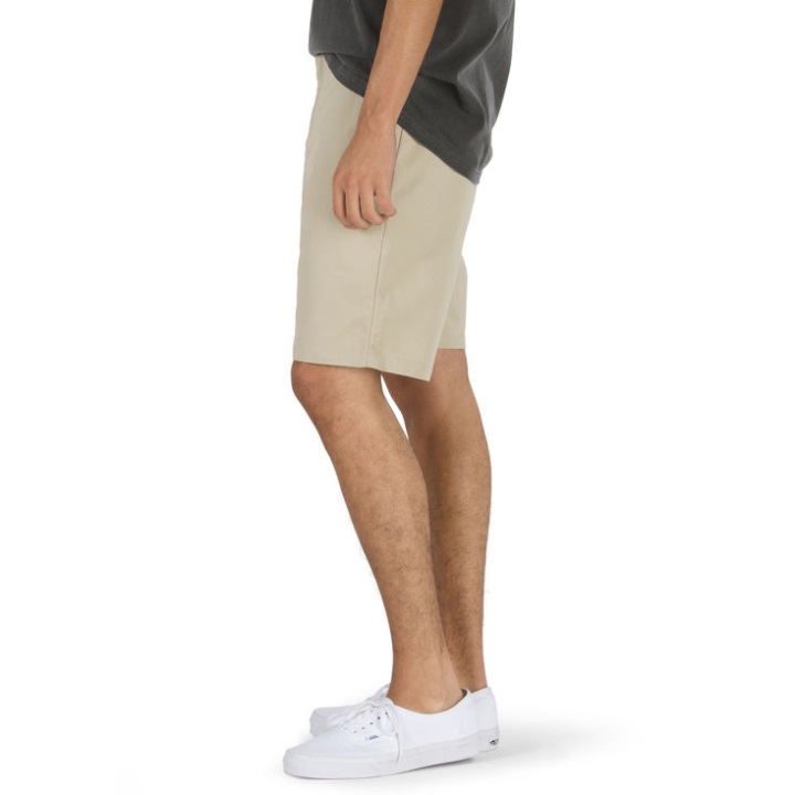 το αυθεντικό ελαστικό σορτς 20" είναι ένα 64% βαμβάκι, 34% πολυεστέρας και 2% ελαστάνη 7,8 ουγκιών. στιβαρό τσίνι με ελαστικό σορτς που χρησιμοποιεί ένα μοναδικό μείγμα κατασκευασμένων ινών για άνεση και αυξημένη ανθεκτικότητα με εξαιρετικό σχήμα και διατήρηση του τεντώματος. Διαθέτει επίσης μπροστινές τσέπες με κάθετο, πίσω τσέπες με κλείσιμο με κουμπιά, υφαντή ετικέτα φορτηγών και μεσαία, μοντέρνα εφαρμογή που κάθεται ακριβώς κάτω από τη μέση. Το μοντέλο έχει ύψος 6 πόδια και φοράει μέγεθος 32.