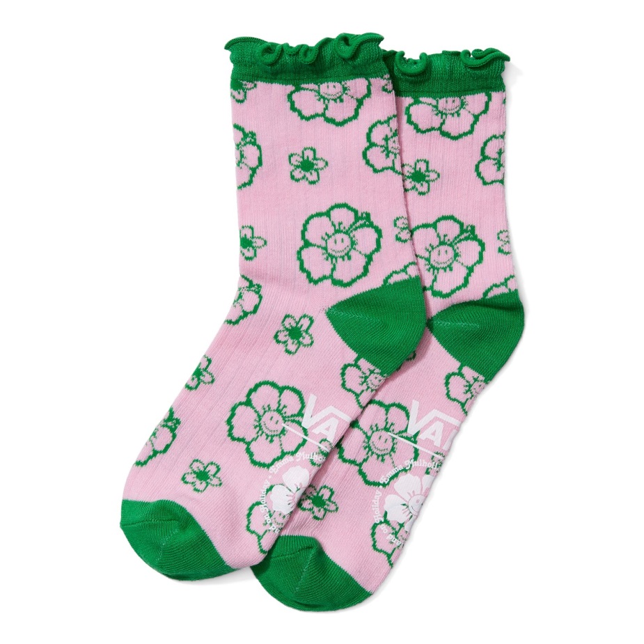 με την ιδιόμορφη τέχνη του ζακάρ με λουλούδια, η κάλτσα των εορταστικών διακοπών κρατά τις δονήσεις των διακοπών. με βολάν, ξεχωριστό ροζ και πράσινο χρώμα και λογότυπα συνεργασίας στο πέλμα, αυτή η υπερυψωμένη κάλτσα πληρώματος προσφέρει μοναδικό στυλ με ξεχωριστή Vintage αίσθηση.