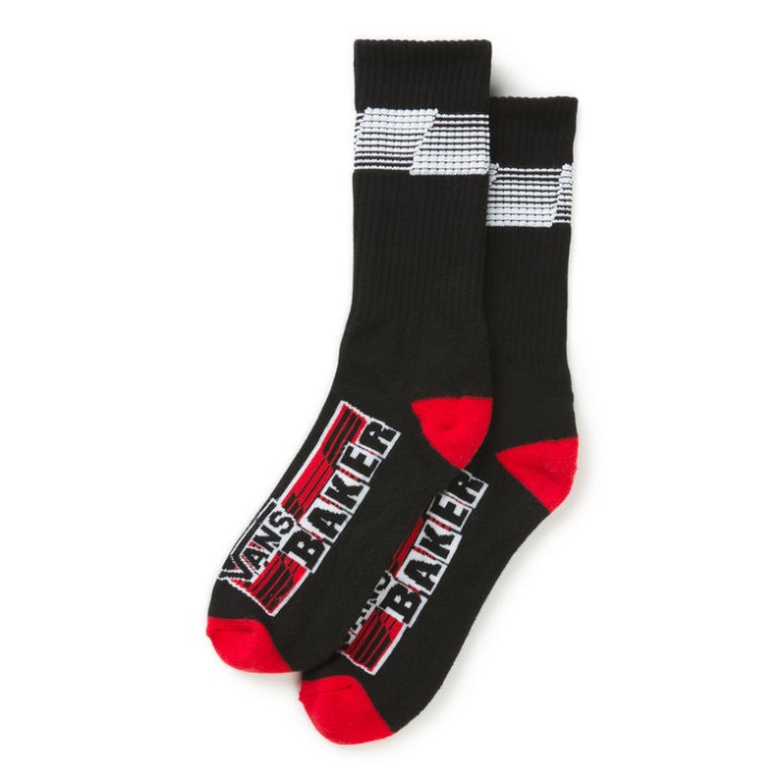 αυτή τη σεζόν, συνεργαστήκαμε με τη μάρκα Skate που "χαρίζει κακό όνομα στο Skateboard από το 2000" για να προσφέρουμε μια μοναδική συλλογή υποδημάτων και ενδυμάτων. Γιορτάζοντας τις ρίζες και των δύο εταιρειών στο Skateboard, η κάλτσα Vans X Baker Crew είναι 70% βαμβάκι, 18% νάιλον, 7% πολυεστέρας, 4% ελαστοδιένιο και 1% ελαστάνη κάλτσα πληρώματος με τέχνη ζακάρ και προσαρμοσμένο λογότυπο συνεργασίας.