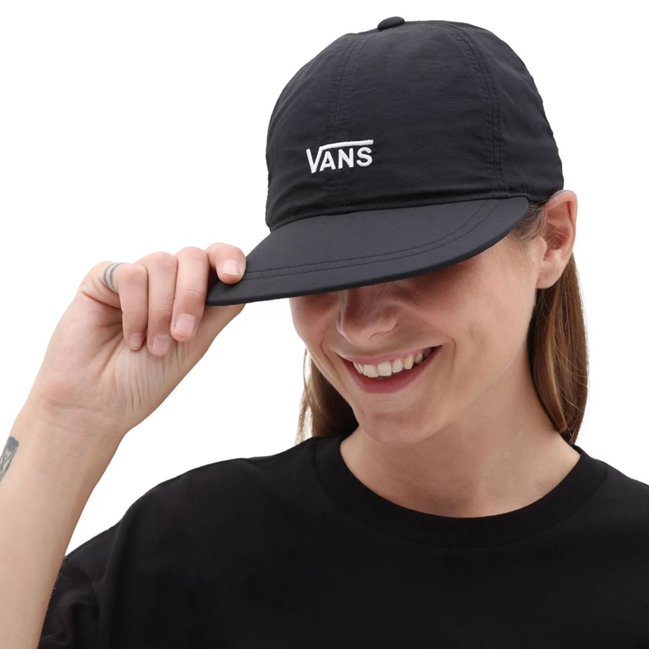 το καπέλο Vans Stow Away είναι ένα καπάκι με δυνατότητα συσκευασίας 6 πάνελ με ρυθμιστή Bungee στο πίσω μέρος και το λογότυπο Vans στο μπροστινό μέρος.