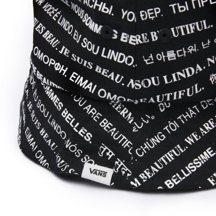 είμαστε όμορφοι. είσαι όμορφη. ειμαι ομορφη. είμαστε όμορφοι - μέσα και έξω. Ως μέρος αυτής της συλλογής, το καπέλο Vans X We are Beautiful σας ενθαρρύνει να υπενθυμίσετε στον εαυτό σας και στους άλλους αυτές τις θετικές επιβεβαιώσεις σε μία από τις 15 διαφορετικές γλώσσες. - Vans X We are Beautiful συλλογή - αναστρέψιμο καπέλο κουβά - 100% βαμβάκι - τύπωμα παντού στη μία πλευρά, κεντημένο λογότυπο στην πίσω πλευρά