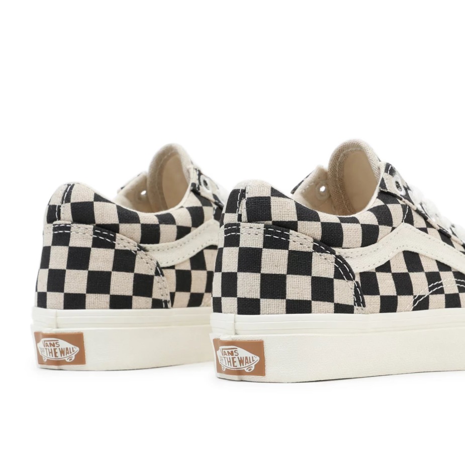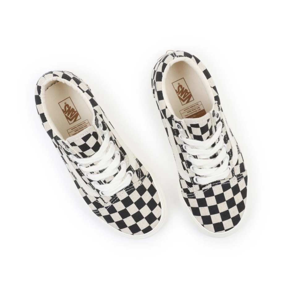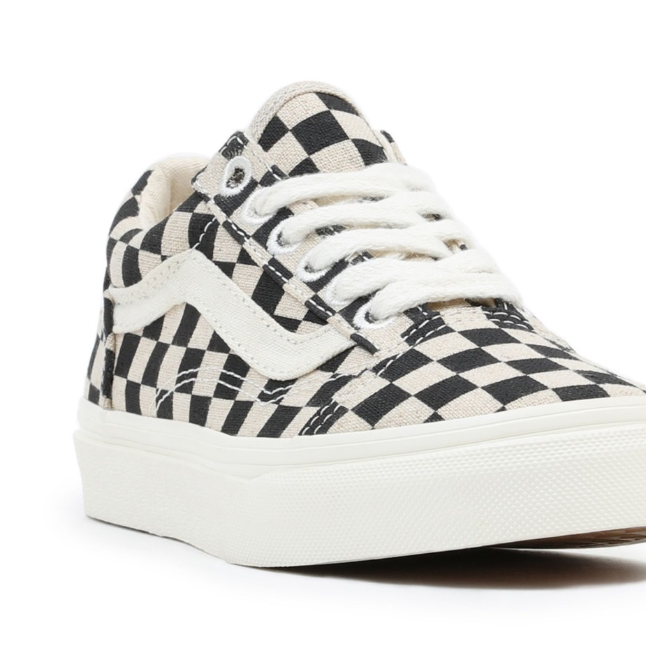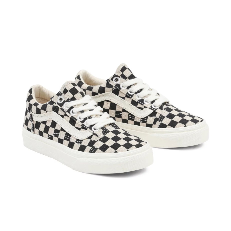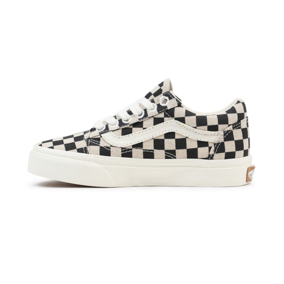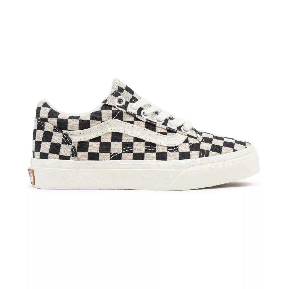 Το πρώτο που έφερε την εμβληματική πλαϊνή ρίγα, το Vans Old Skool είναι ένα χαμηλό μπλουζάκι, δεμένο παπούτσι. είναι επενδεδυμένο, διαθέτει γιακά με επένδυση για στήριξη και ευελιξία, ενισχυμένα καλύμματα στα δάχτυλα για να αντέχουν την επαναλαμβανόμενη φθορά και διαθέτει την εξωτερική σόλα βάφλας τύπου Vans για πιο σταθερό κράτημα.