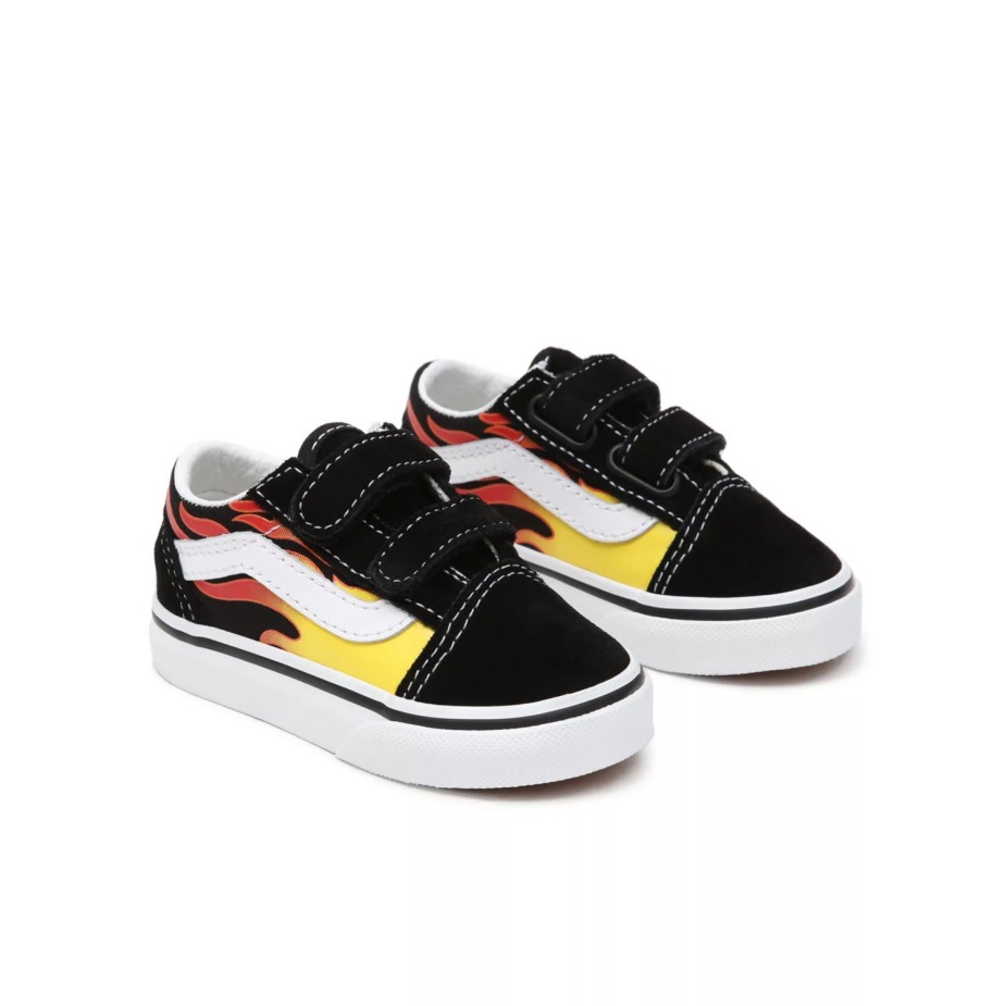 το νήπιο Flame Old Skool V επαναπροσδιορίζει το εμβληματικό μας παπούτσι με πλάγια λωρίδα, αλλάζοντας τα παραδοσιακά κορδόνια με διπλά κουμπιά με γάντζο και θηλιά. Διαθέτοντας ανθεκτικό πάνω μέρος από καστόρι και καμβά με διαχρονική στάμπα με φλόγα, αυτό το χαμηλό τοπ στυλ διατηρεί την κλασική του γοητεία, ενώ παρέχει μια εύκολη, ασφαλή εφαρμογή που θα κρατήσει τα μικρά σας άνετα όλη την ημέρα. το Toddler Flame Old Skool V περιλαμβάνει επίσης ενισχυμένα καλύμματα ποδιών, υποστηρικτικά γεμισμένα γιακά και επώνυμες εξωτερικές σόλες από καουτσούκ βάφλα.