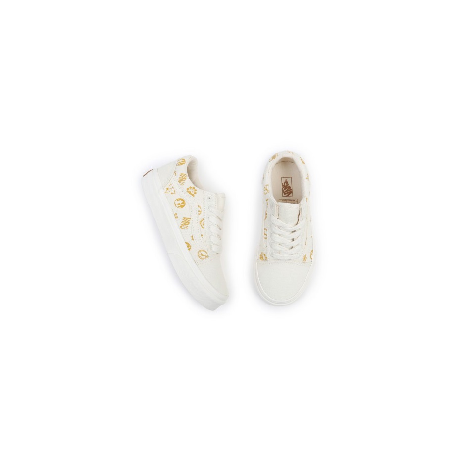 Τα πρώτα που φέρουν την εμβληματική πλαϊνή ρίγα, τα παιδικά παπούτσια Vans είναι ένα χαμηλό κορυφαίο παπούτσι με κορδόνια. είναι φόδρα, έχουν κολάρο με επένδυση για άνεση, ενισχυμένα καλύμματα στα δάχτυλα για να αντέχουν την επαναλαμβανόμενη φθορά και διαθέτουν την εξωτερική σόλα βάφλας τύπου Vans για πιο σταθερό κράτημα.