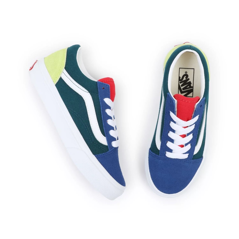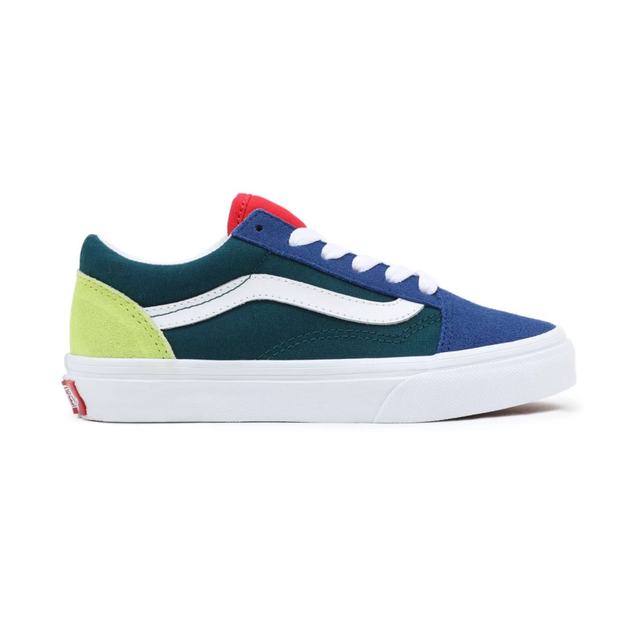 Το πρώτο που έφερε την εμβληματική πλαϊνή ρίγα, το Vans Old Skool είναι ένα χαμηλό μπλουζάκι, δεμένο παπούτσι. είναι φόδρα, διαθέτει γιακά με επένδυση για στήριξη και ευελιξία, ενισχυμένα καλύμματα στα δάχτυλα για να αντέχουν την επαναλαμβανόμενη φθορά και διαθέτει την εξωτερική σόλα βάφλας τύπου Vans για πιο σταθερό κράτημα.