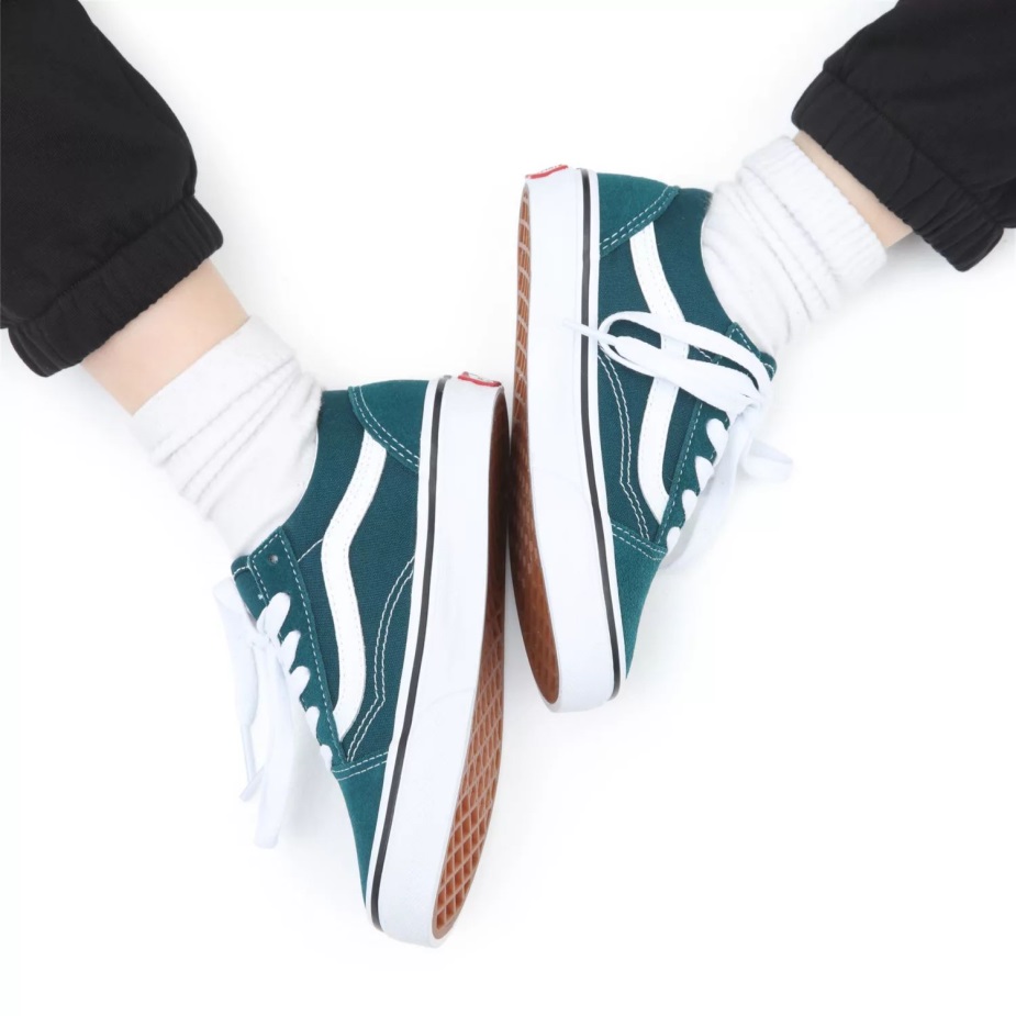 η συλλογή θεωρίας χρωμάτων σάς επιτρέπει να δημιουργήσετε μια μοναδική ιστορία χρωμάτων συνδυάζοντας ζωντανές, απροσδόκητες αποχρώσεις με τις εμβληματικές σιλουέτες των υποδημάτων μας. Φτιαγμένο με στιβαρό πάνω μέρος από σουέτ και καμβά, το χρωματολογικό παλιό Skool τιμά το χαρακτηριστικό μας παπούτσι με χαμηλό μπλουζάκι, πλαϊνές ρίγες με εντυπωσιακά χρώματα, ιδανικά για την εποχή. αυτό το διαχρονικό στυλ κορδονιού περιλαμβάνει επίσης ενισχυμένα καλύμματα στα δάχτυλα, υποστηρικτικούς γιακάς με επένδυση και επώνυμες εξωτερικές σόλες από καουτσούκ βάφλα.