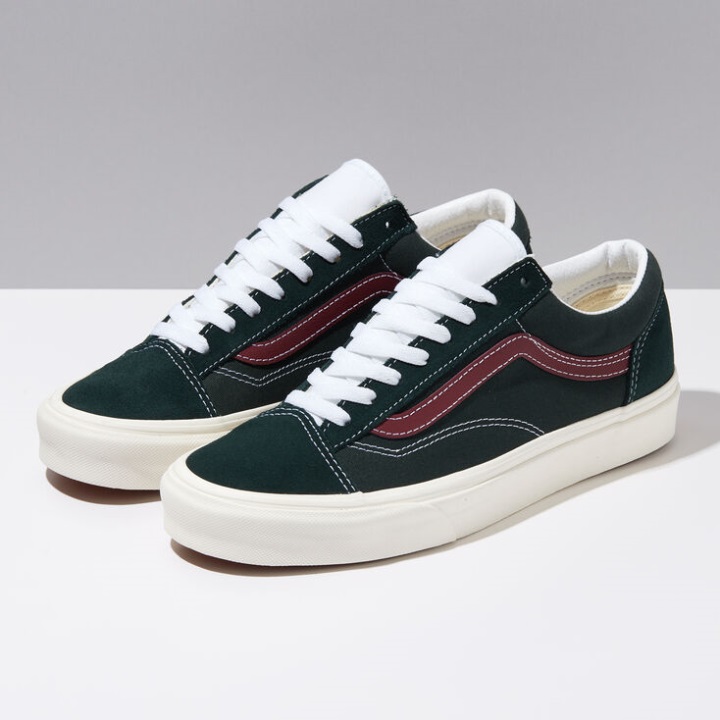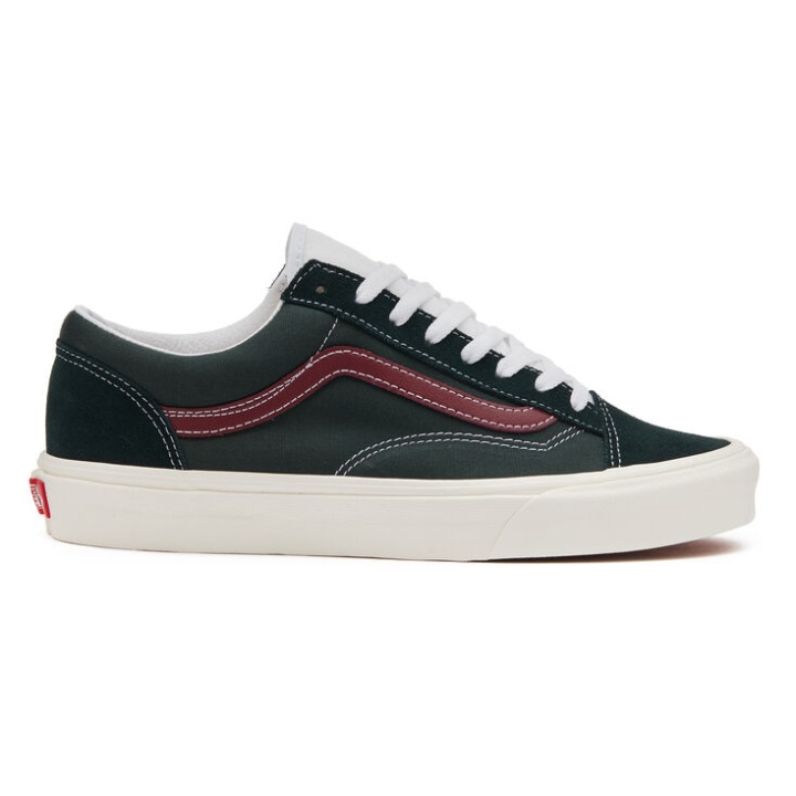 το στυλ 36, ένα κλασικό παπούτσι για Skate Vans που φέρει την εμβληματική πλαϊνή λωρίδα, είναι ένα χαμηλό κορδόνι με στιβαρό επάνω μέρος από καμβά με διάφορα Prints, ενισχυμένα καλύμματα στα δάχτυλα για να αντέχουν την επαναλαμβανόμενη φθορά, επενδυμένους γιακά για στήριξη και ευελιξία και επώνυμες σόλες από καουτσούκ βάφλα .