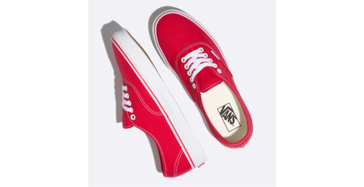 Vans το αυθεντικό, Vans πρωτότυπο και τώρα εμβληματικό στιλ, είναι ένα απλό χαμηλό μπλουζάκι, κορδόνι με ανθεκτικό επάνω μέρος από καμβά, μεταλλικές οπές, ετικέτα με σημαία φορτηγών και αυθεντική εξωτερική σόλα από βάφλα φορτηγών