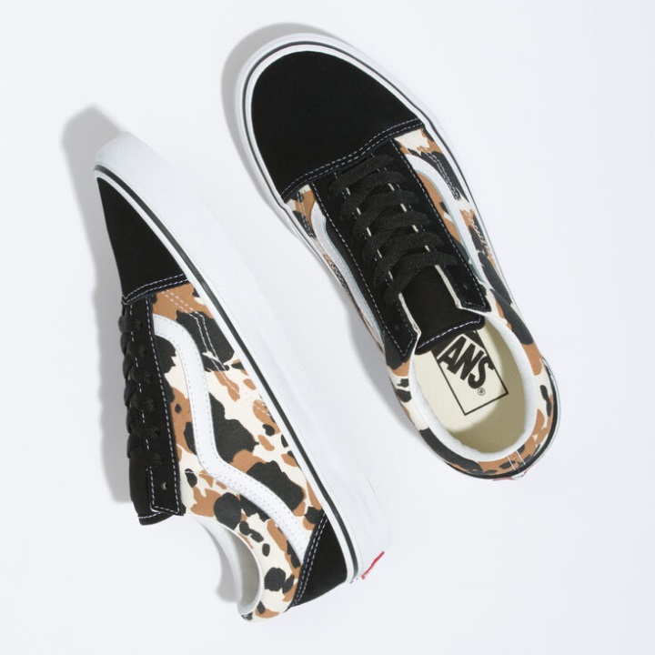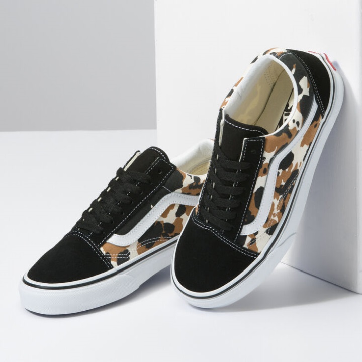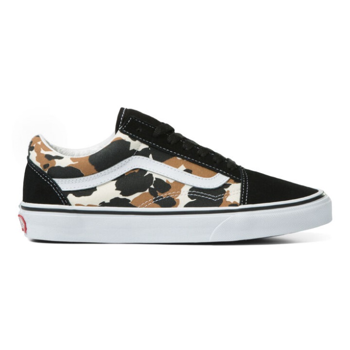 το πολύχρωμο παλιό Skool αγελάδας, το κλασικό παπούτσι για Skate Vans και το πρώτο που ξεγύμνωσε το εμβληματικό πλαϊνό λωρίδα, είναι ένα χαμηλό κορδόνι με στιβαρό καμβά και συνθετικό επάνω μέρος, ενισχυμένα καλύμματα στα δάχτυλα για να αντέχουν την επαναλαμβανόμενη φθορά, γεμισμένα γιακά για στήριξη και ευελιξία , και επώνυμες εξωτερικές σόλες από καουτσούκ βάφλα.
