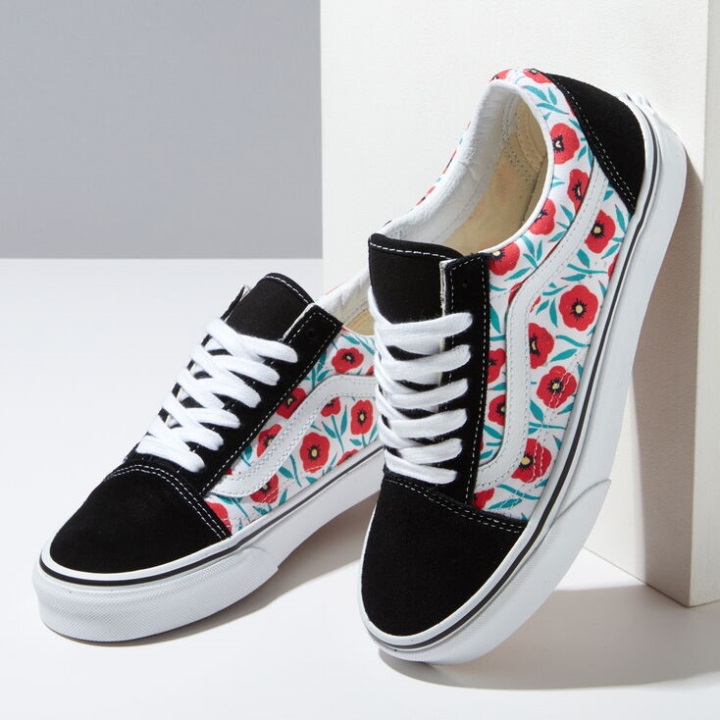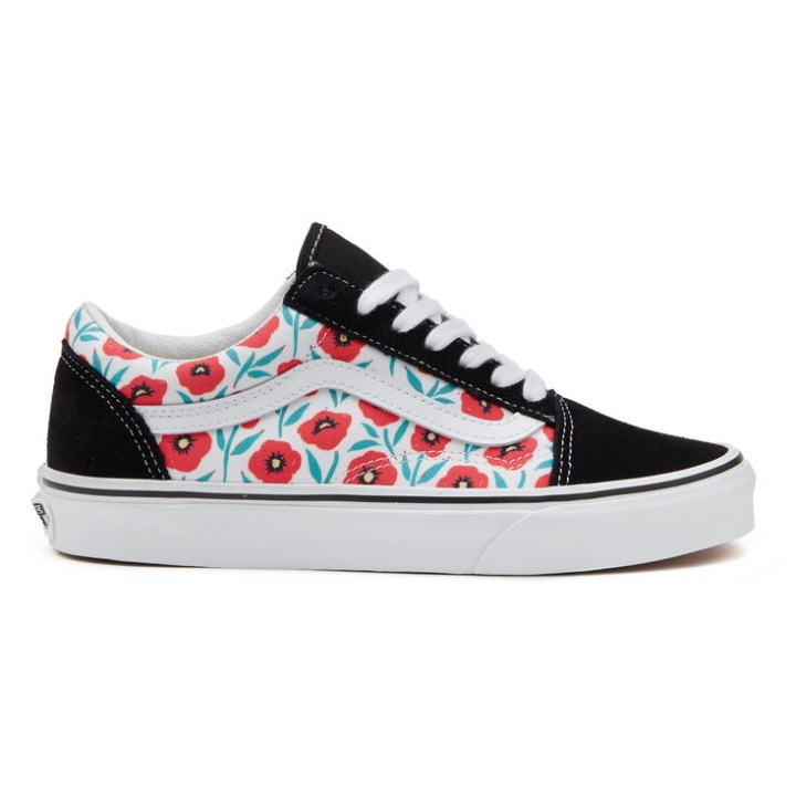 το λουλούδι παλιό Skool, το κλασικό παπούτσι για Skate Vans και το πρώτο που ξεγύμνωσε το εμβληματικό πλαϊνό ρίγες, είναι ένα χαμηλό κορδόνι με λουλουδένιο ύφασμα και σουέτ στο πάνω μέρος, ενισχυμένα καπάκια στα δάχτυλα για να αντέχουν την επαναλαμβανόμενη φθορά, γεμισμένους γιακά για στήριξη και ευελιξία και υπογραφή Εξωτερικές σόλες βάφλας από καουτσούκ.