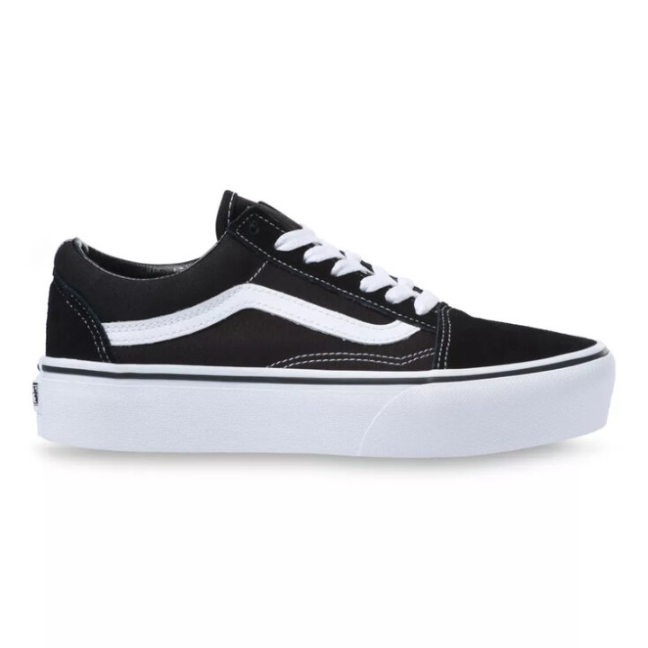 η παλιά πλατφόρμα του σχολείου συνδυάζει το κλασικό πλευρικό παπούτσι για Skate με στιβαρό καμβά και σουέτ επάνω μέρος, ενισχυμένα καλύμματα ποδιών για να αντέχουν την επαναλαμβανόμενη φθορά, γεμισμένους γιακά για στήριξη και ευελιξία και εξωτερικές σόλες από καουτσούκ βάφλας με την υπογραφή πλατφόρμας.