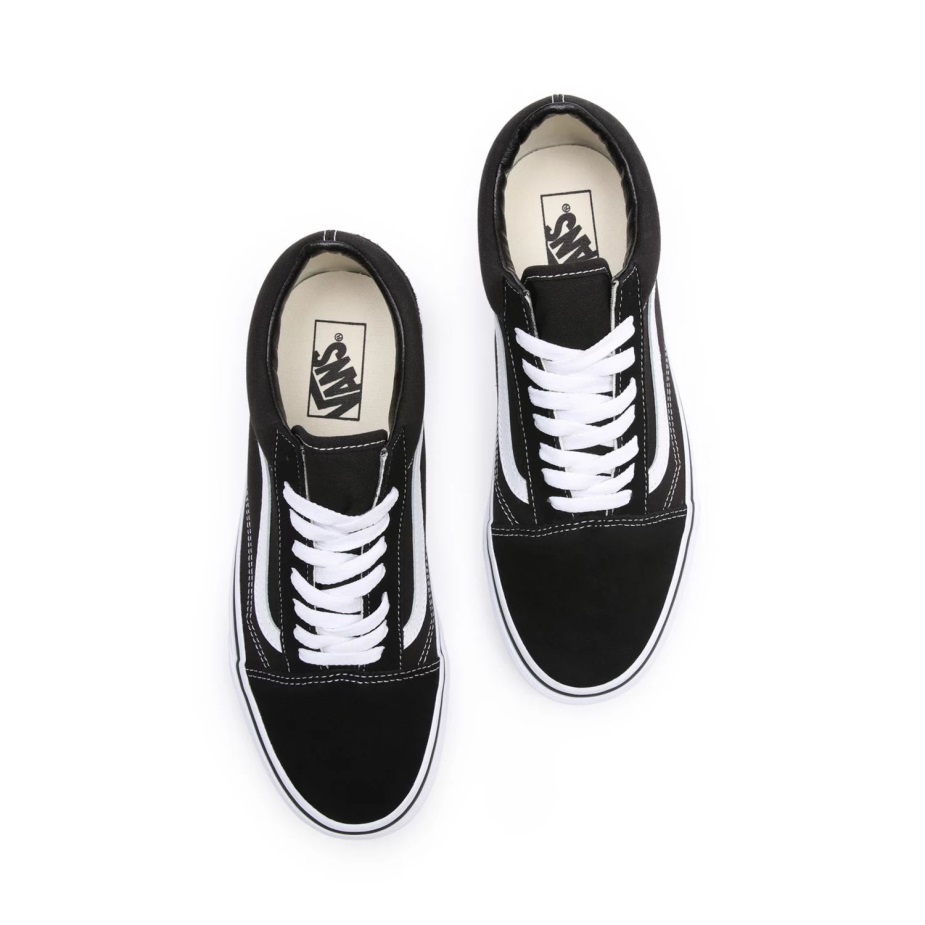 Το πρώτο που έφερε την εμβληματική πλαϊνή ρίγα, το Vans Old Skool είναι ένα χαμηλό μπλουζάκι, δεμένο παπούτσι. Είναι επενδεδυμένο, διαθέτει γιακά με επένδυση για στήριξη και ευελιξία, ενισχυμένα καπάκια στα δάχτυλα για να αντέχουν την επαναλαμβανόμενη φθορά και διαθέτει την εξωτερική σόλα βάφλας τύπου Vans για πιο σταθερό κράτημα.