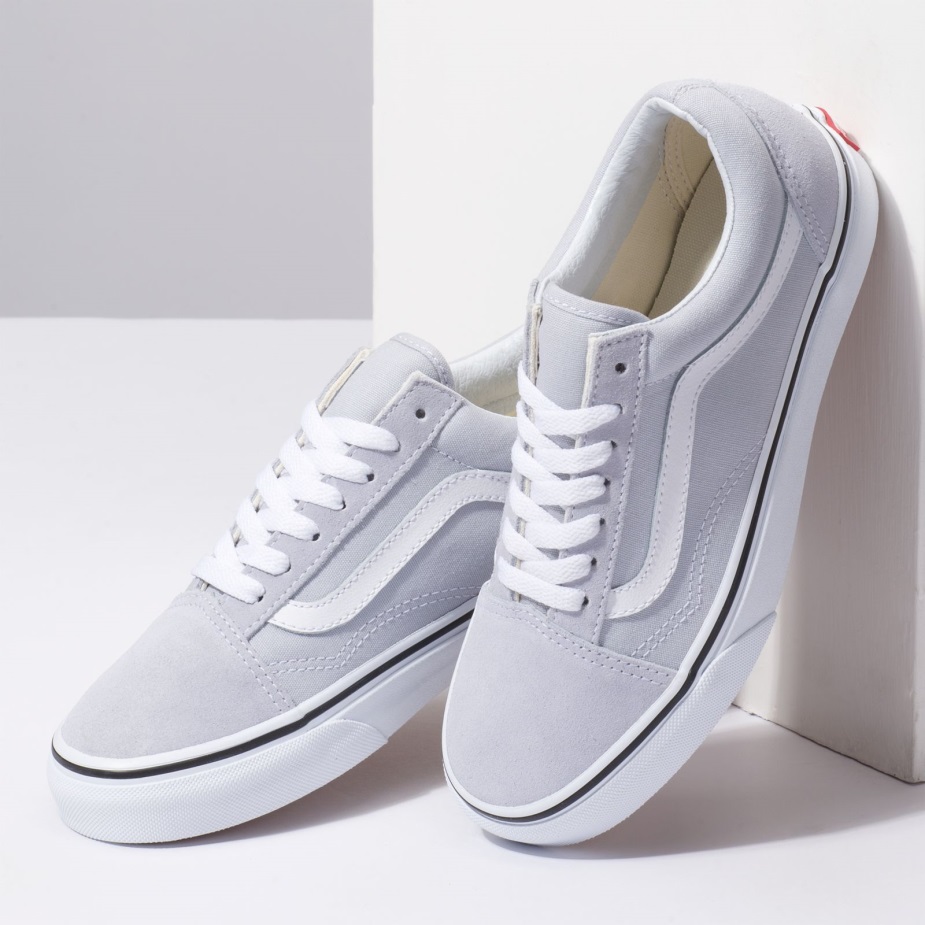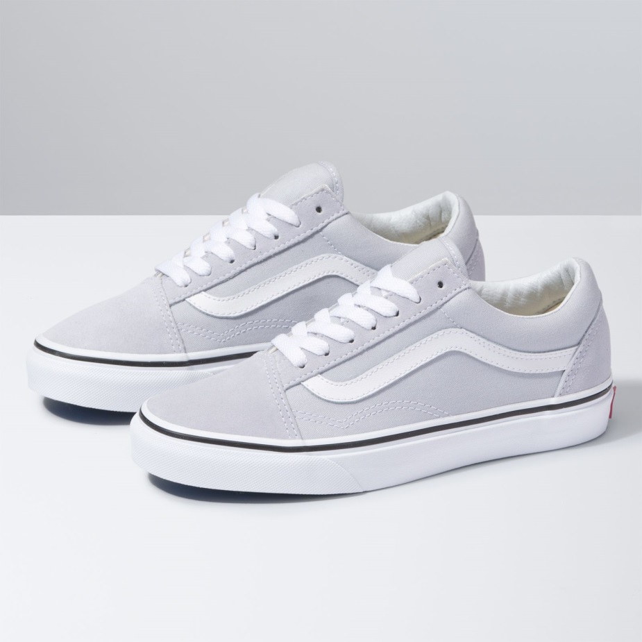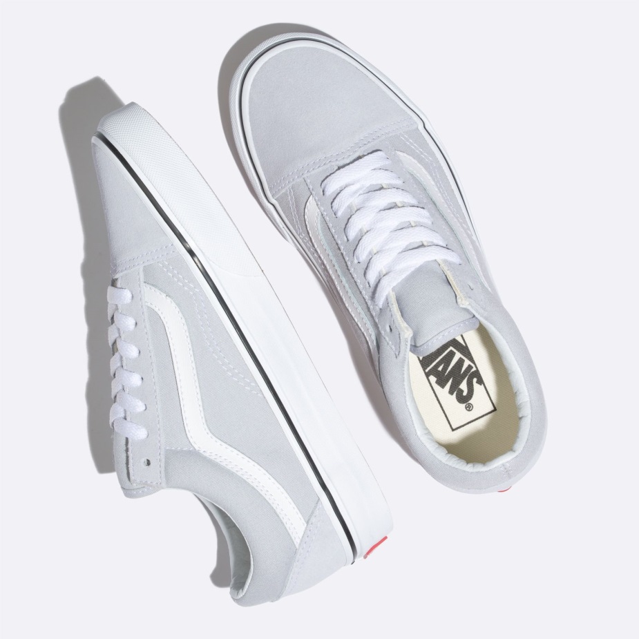 το παλιό Skool, το κλασικό παπούτσι για Skate Vans και το πρώτο που φέρει την εμβληματική πλαϊνή λωρίδα, είναι ένα χαμηλό κορδόνι με στιβαρό καμβά και σουέτ επάνω μέρος, ενισχυμένα καπάκια στα δάχτυλα για να αντέχουν την επαναλαμβανόμενη φθορά, γεμισμένους γιακά για στήριξη και ευελιξία , και επώνυμες εξωτερικές σόλες από καουτσούκ βάφλα.