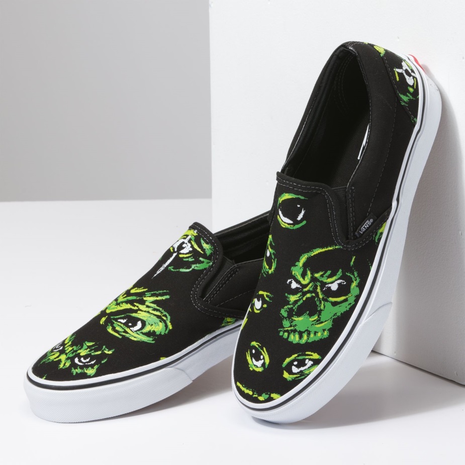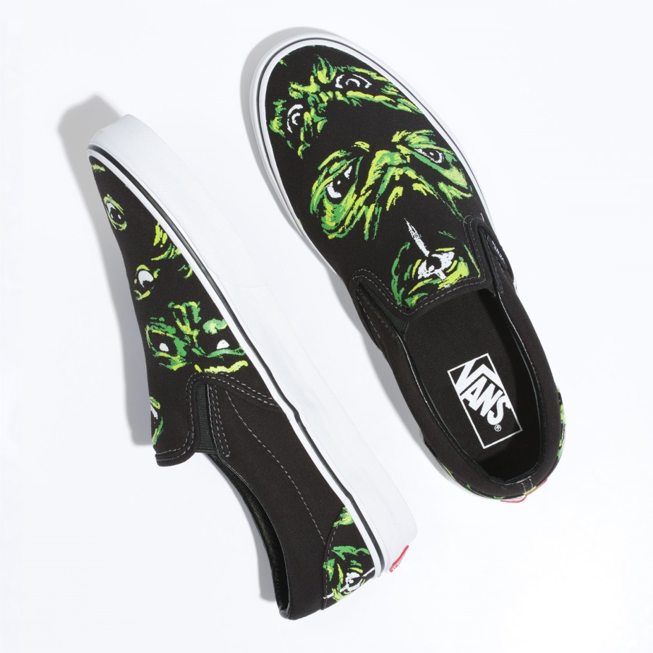 διαθέτουν ένα τρομακτικό πράσινο στάμπα στα μάτια σε ένα βαθύ μαύρο φόντο, τα μάτια στο σκούρο κλασικό Slip- Το On είναι καθημερινό απαραίτητο με αληθινό στυλ "off The Wall". αυτό το διαχρονικό Slip-on παπούτσι περιλαμβάνει επίσης στιβαρό επάνω μέρος από καμβά, υποστηρικτικούς γιακάς με επένδυση, ελαστικές πινελιές στο πλάι και επώνυμες σόλες από καουτσούκ βάφλα.