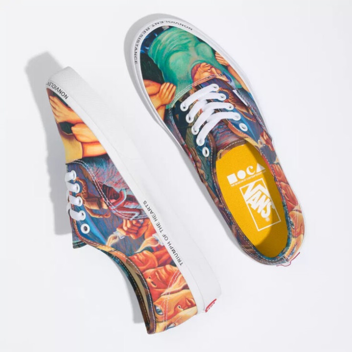 Από τη συλλογή μας μέχρι τα δικά σας φορτηγά και το μουσείο σύγχρονης τέχνης, το Λος Άντζελες είναι δύο ιδρύματα που ενθαρρύνουν την έκφραση της δημιουργικότητας και δεσμεύονται να κάνουν τη δημιουργική έκφραση προσβάσιμη σε όλους. αυτή τη σεζόν, τα βαν και η μόκα είναι περήφανα που συνεργάζονται σε μια συλλογή υποδημάτων και ενδυμάτων που γιορτάζει τη δημιουργικότητα με ρίζες από την Καλιφόρνια. μέρος μιας καινοτόμου ταξιδιωτικής έκθεσης που φαντάζεται την ειρήνη ως μια ενεργητική και όχι ως παθητική έννοια, η Τζούντι Μπακάς είναι ο παγκόσμιος τοίχος: ένα όραμα του μέλλοντος χωρίς φόβο περιλαμβάνει οκτώ πάνελ 10 επί 30 τοποθετημένα σε κύκλο, που προσκαλούν διάλογο και εμπνέουν ακτιβισμό. το Vans X Moca Authentic τονίζει ένα από αυτά τα πάνελ. Με τίτλο θρίαμβος των καρδιών, το έργο τέχνης Bacas απεικονίζει την αρχή κάθε κίνησης μιας κοινωνίας προς την ειρήνη: το άτομο που αναλαμβάνει δράση. το Vans X Moca Authentic είναι κατασκευασμένο με στιβαρό υφασμάτινο επάνω μέρος. Αυτό το χαμηλό μπλουζάκι με κορδόνια περιλαμβάνει επίσης μεταλλικές οπές και επώνυμες εξωτερικές σόλες από καουτσούκ βάφλα. - συλλογή Vans X Moca - ολόπλευρη εκτύπωση από Judy Bacas Triumph Of The Hearts, μια λεπτομέρεια από τον παγκόσμιο τοίχο: ένα όραμα για το μέλλον χωρίς φόβο - στιβαρό υφασμάτινο επάνω μέρος με κέντημα - μεταλλικές οπές - σόλες από καουτσούκ βάφλα με υπογραφή