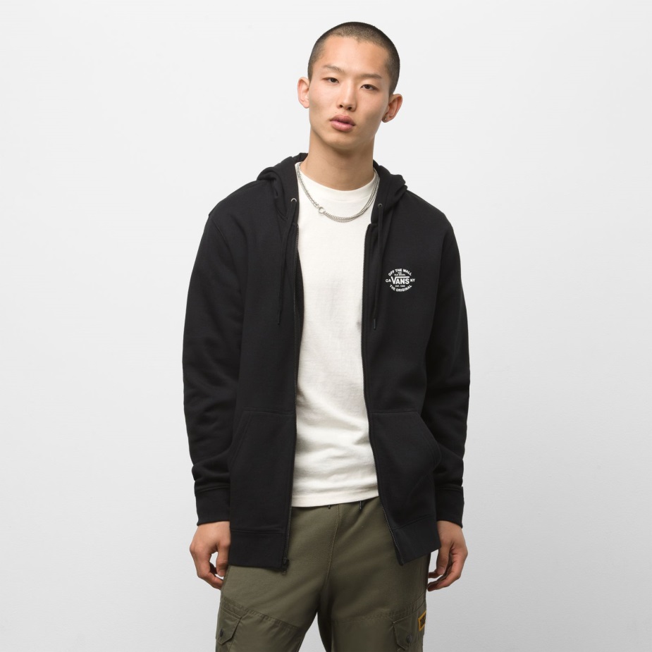 το εποχικό φούτερ με φερμουάρ είναι ένα φούτερ με κουκούλα από 60% βαμβάκι, 40% πολυεστέρας από φλις κουκούλα με πλήρες φερμουάρ, μπροστινές τσέπες στο χέρι και στάμπα με το αριστερό λογότυπο στο στήθος. Ο James Baek (αυτός/αυτός) έχει ύψος 6' 0" και φοράει επάνω νούμερο M & κάτω μέγεθος 32.