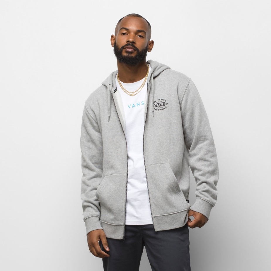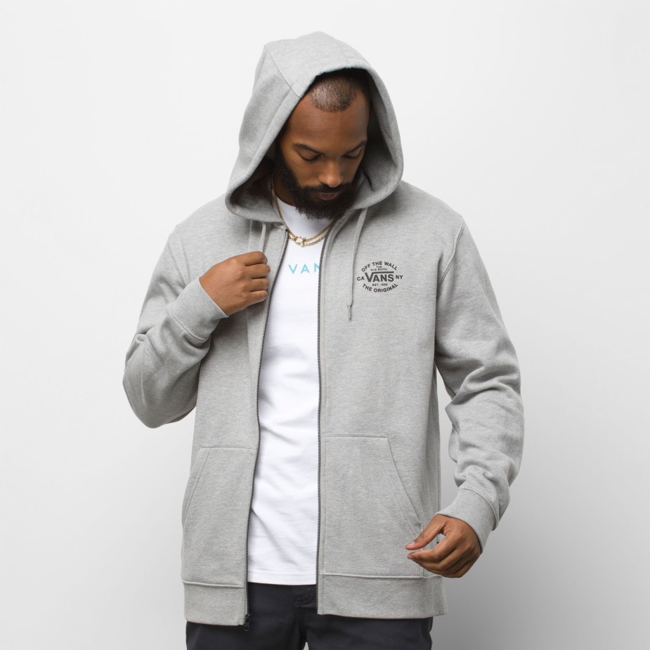 το εποχικό φούτερ με φερμουάρ είναι ένα φούτερ με κουκούλα από 60% βαμβάκι, 40% πολυεστέρας από φλις κουκούλα με πλήρες φερμουάρ, μπροστινές τσέπες στο χέρι και στάμπα με το αριστερό λογότυπο στο στήθος. Το μοντέλο έχει ύψος 6 πόδια και φοράει μεσαίο μέγεθος.