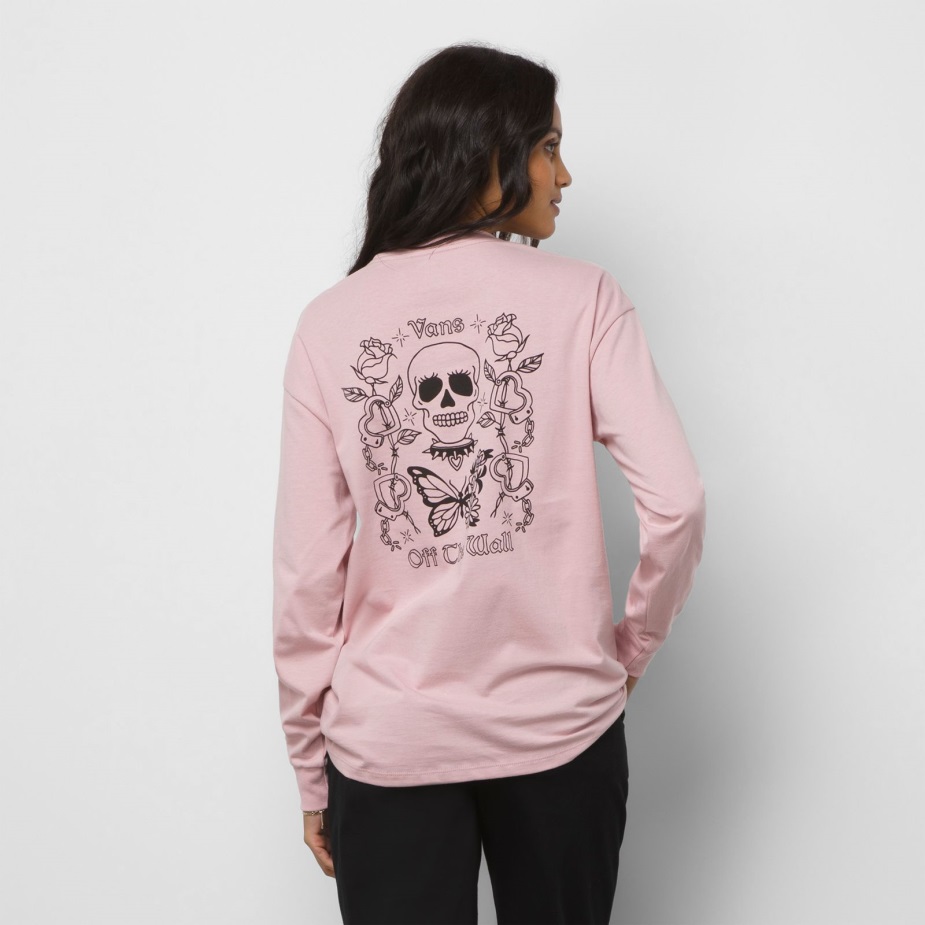 εμπνευσμένο από την τέχνη του τατουάζ της παλιάς σχολής, το μπλουζάκι Tattoo διαθέτει τέχνη με μαύρη γραμμή στο αριστερό στήθος και στην πλάτη. Μια πεταλούδα κυματίζει και στα δύο σχέδια, ενώ στο πίσω μέρος ένα μεγάλο κρανίο με αγκαθωτά τριαντάφυλλα που σημειώνουν το γραφικό. αυτό το κλασικό μπλουζάκι με λαιμόκοψη έχει μακριά μανίκια και είναι κατασκευασμένο από βαρύτερο βαμβάκι.