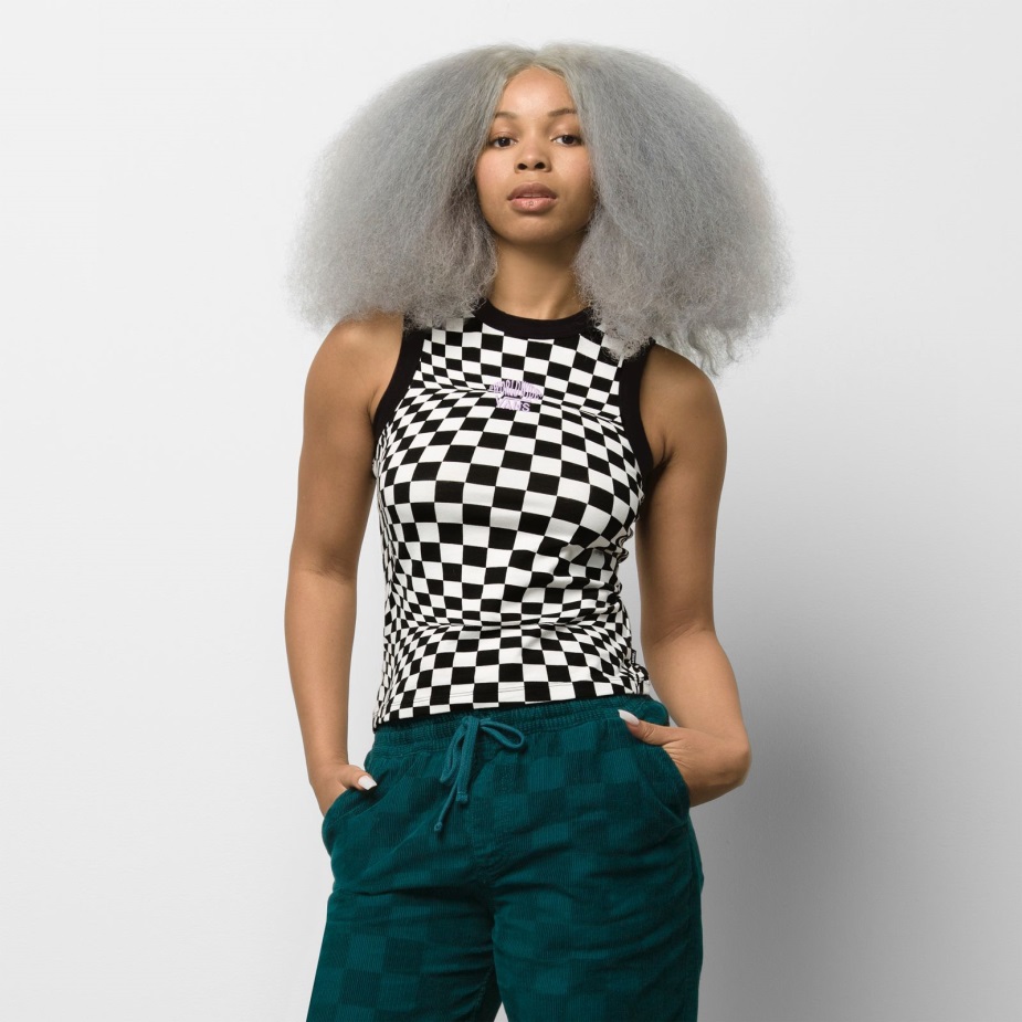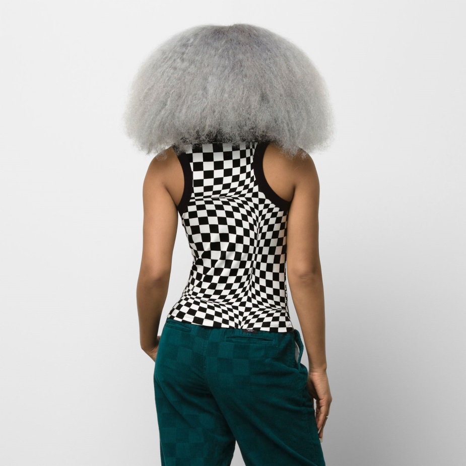 τα φορτηγά σε όλο τον κόσμο προσαρμόζουν την εμβληματική μας εκτύπωση σκακιέρας με ένα στρεβλό μοτίβο επιταγής. κατασκευασμένο από 96% βαμβάκι και 4% ελαστάνη, αυτό το εντοιχισμένο φανελάκι κατάδυσης με σχέδιο ράχης στην πλάτη διαθέτει επίσης κέντημα με λογότυπο σε αντίθεση στο κέντρο μπροστά. Το μοντέλο έχει ύψος 5 πόδια 9 ίντσες και φοράει μικρό μέγεθος.
