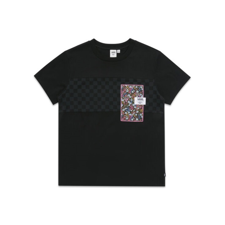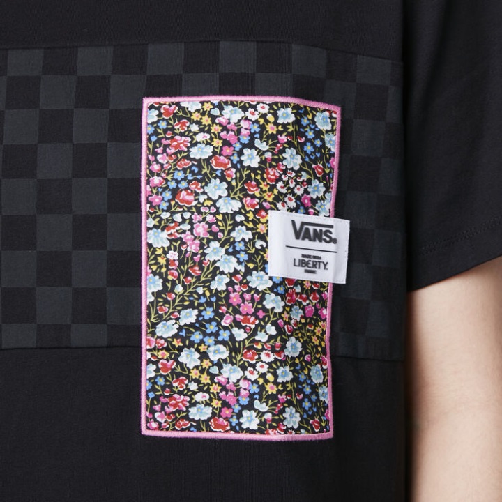 φτιαγμένα με τα ζωηρά λουλουδάτα υφάσματα για τα οποία είναι γνωστά τα υφάσματα σχεδιαστών Liberty με βάση το Λονδίνο, τα βαν από υφασμάτινο μπλουζάκι Liberty εμποτίζουν ένα κλασικό T-shirt Vans με την αίσθηση της ιστορίας, της ανακάλυψης και του πρωτοποριακού σχεδιασμού που κάνει το Liberty αναγνωρισμένο όνομα παγκοσμίως. Αυτό το κοντομάνικο μπλουζάκι με ένθετο πλαίσιο σκακιέρας στο μπροστινό μέρος του στήθους μετατοπίζεται από ένα έμπλαστρο με λογότυπο και απλικέ ύφασμα Liberty με λεπτομέρειες με μαλακές ραφές. είναι κατασκευασμένο από 100% βαμβάκι και έχει εφαρμογή Boyfriend. Το μοντέλο έχει ύψος 5 πόδια 9 ίντσες και φοράει μικρό μέγεθος.