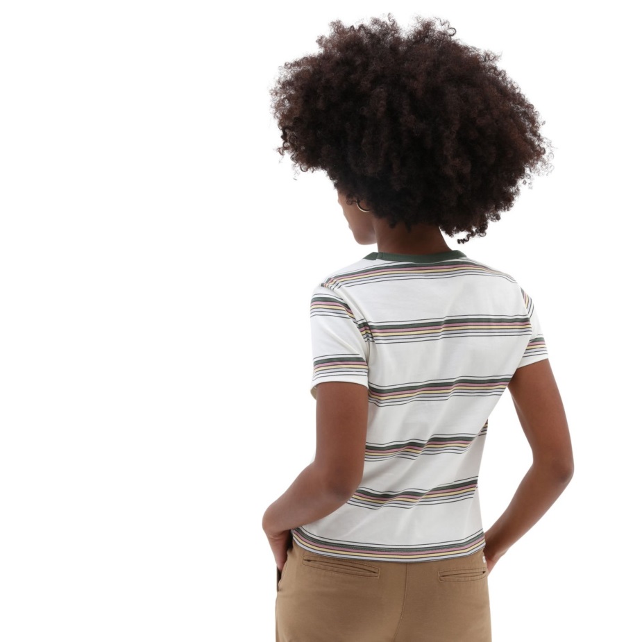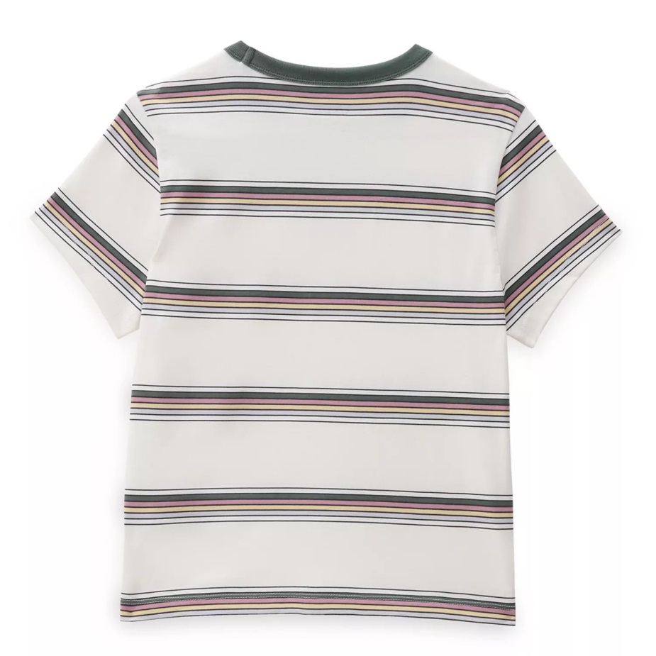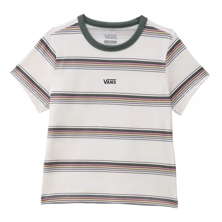 Με ρίγες βαμμένες σε όλο το νήμα σε ένα απαλό μείγμα χρωμάτων εμπνευσμένων από ρετρό, το μίνι μπλουζάκι με γραμμή είναι ένα βαρύ μίνι μπλουζάκι από 100% βαμβακερό ζέρσεϊ με ευκολοφόρετα Vintage Vibes. αυτό το κοντομάνικο μπλουζάκι περιλαμβάνει επίσης μια ζώνη με αντίθεση στο λαιμό και κλασικά γραφικά με λογότυπο στο κέντρο μπροστά.