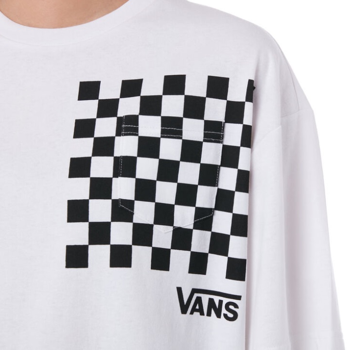 Το μπλουζάκι με πούλι στην τσέπη είναι ένα μπλουζάκι από 100% βαμβάκι με στρογγυλή λαιμόκοψη με σχέδιο καρό πάνω από την μπροστινή τσέπη και λογότυπο βαν κάτω από την τσέπη.