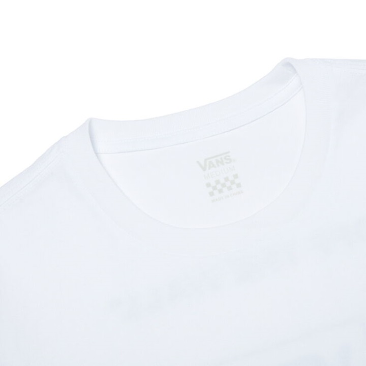 το κλασικό μπλουζάκι Wave είναι ένα 100% βαμβακερό μπλουζάκι με στρογγυλή λαιμόκοψη με κλασικό κυματιστό σχέδιο Vans στο πίσω μέρος με έντονη γραμμή στον τοίχο και απλό σχέδιο κυματισμού στο μπροστινό μέρος.