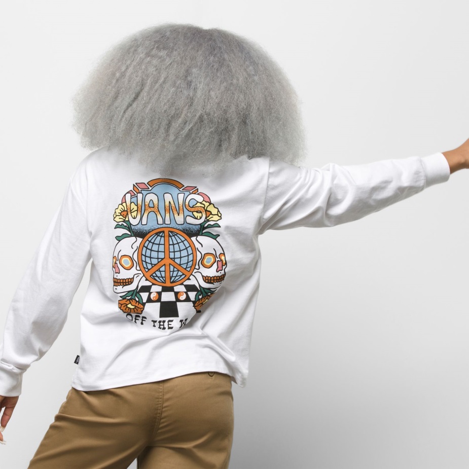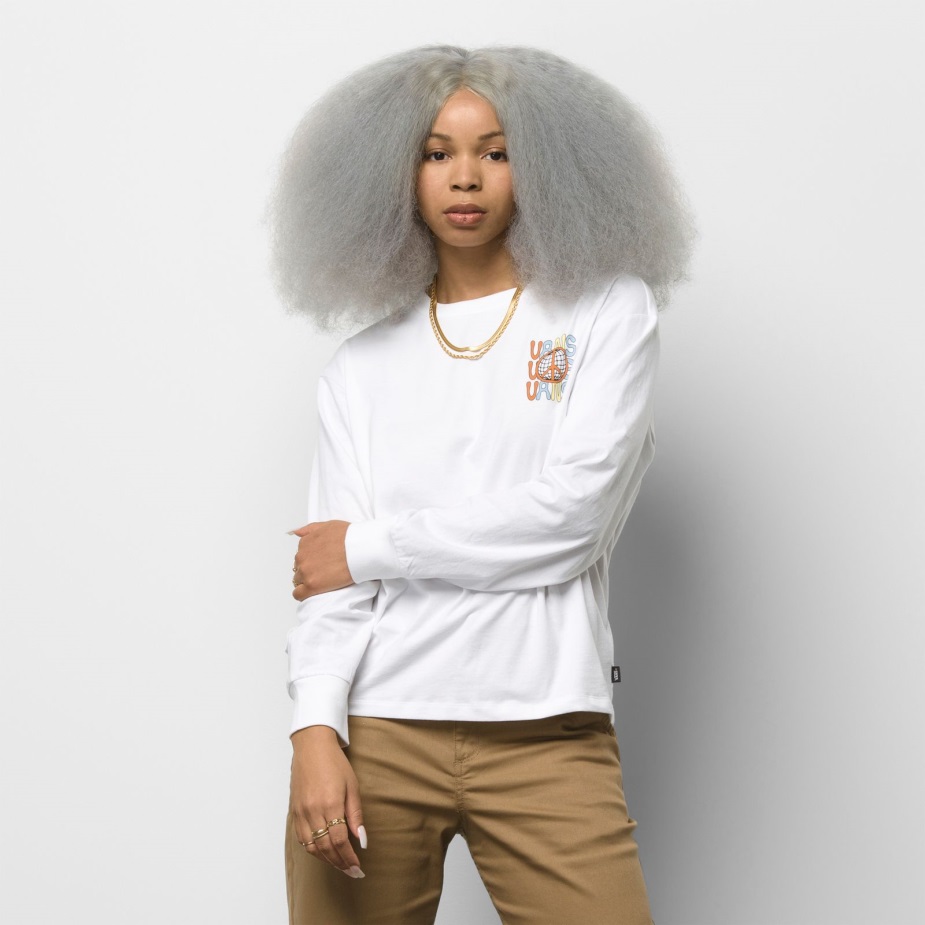 το μπλουζάκι Glow Bully είναι ένα 100% βαρύ βαμβακερό μπλουζάκι με μακριά μανίκια από μπλουζάν και πολύχρωμα γραφικά στο αριστερό στήθος και την πλάτη. Το μοντέλο έχει ύψος 5 πόδια 9 ίντσες και φοράει μικρό μέγεθος.