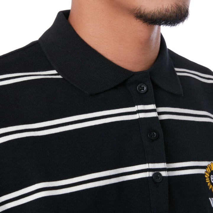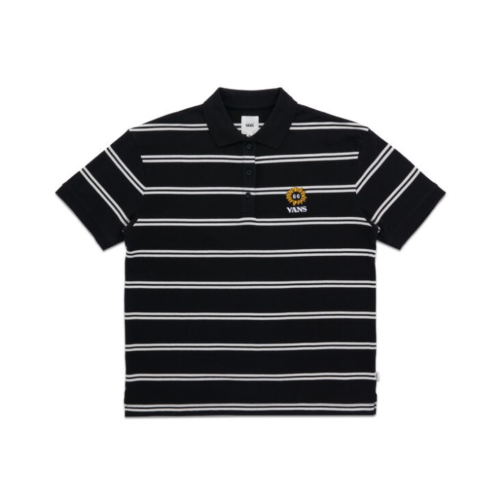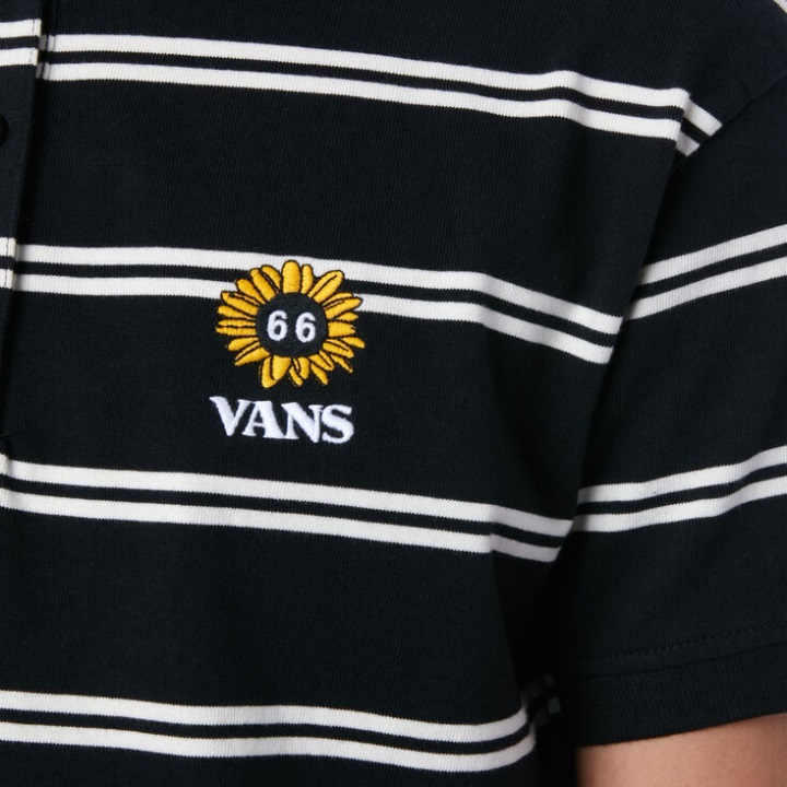 Vans 66 μπλουζάκι πόλο ηλίανθου μαύρο-μαρσμέλο ρίγα