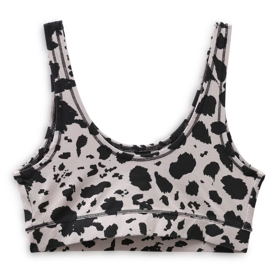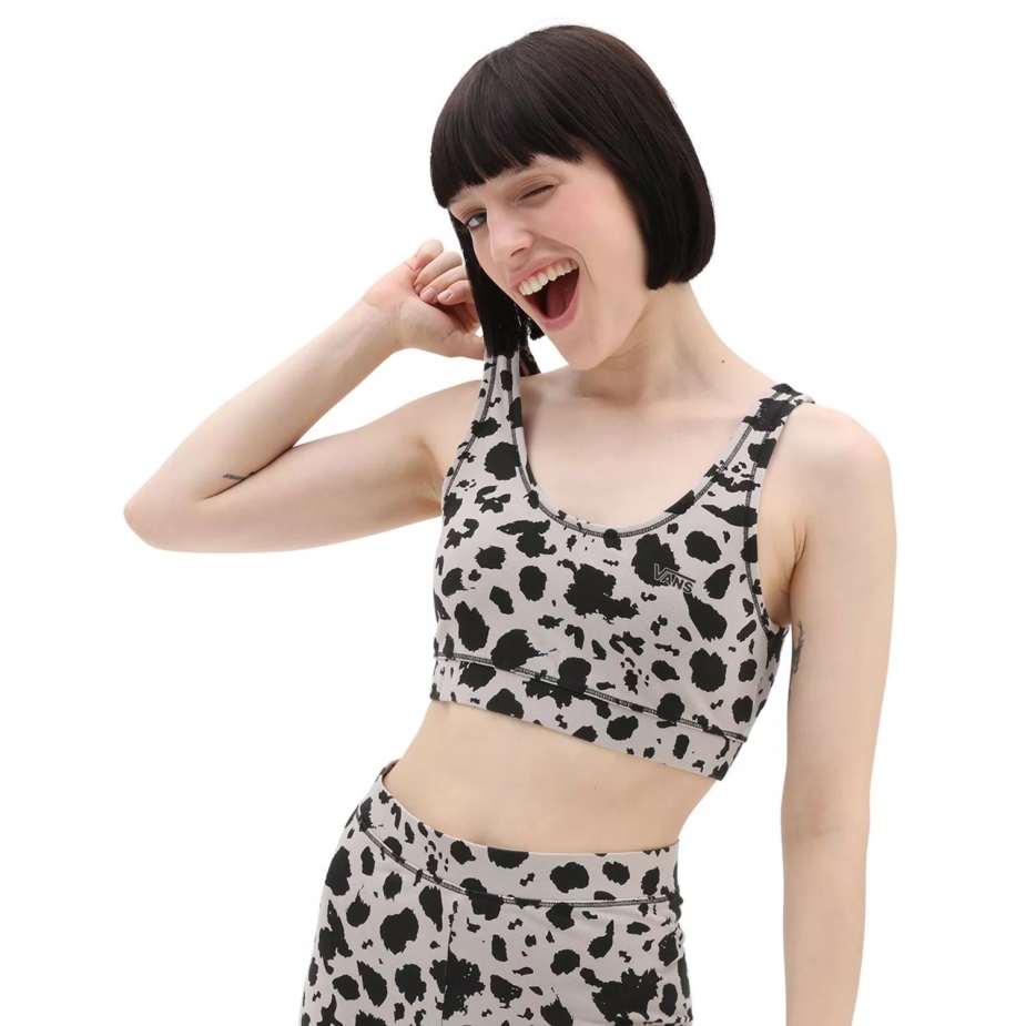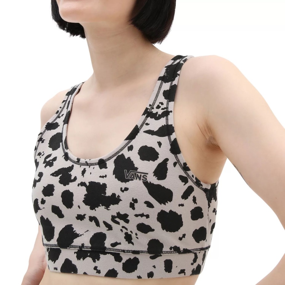 Διαθέτοντας διπλή σέσουλα μπροστά και πίσω, το σουτιέν Flying V Print είναι ένα εφαρμοστό σουτιέν κατασκευασμένο από ένα λείο, ελαστικό βαμβακερό μείγμα ελαστάνης. ένα κλασικό τύπωμα οθόνης λογότυπου σηματοδοτεί το αριστερό στήθος και το τύπωμα στο πλάι αναδεικνύει το βλέμμα.