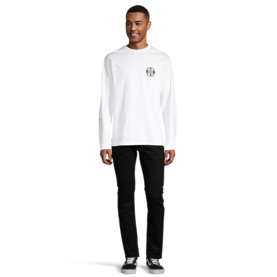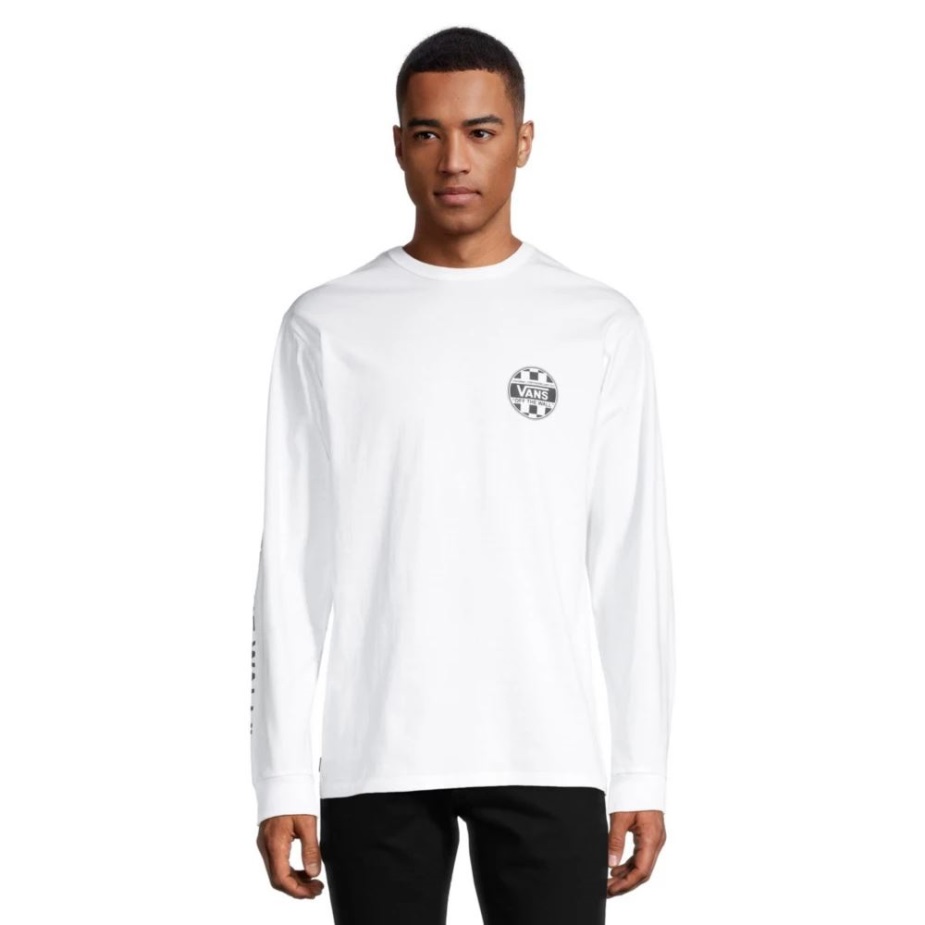 το Off The Wall Check είναι ένα μακρυμάνικο μπλουζάκι από 100% βαμβάκι Supima με κεντημένο μπάλωμα στο στήθος, προσαρμοσμένη θηλιά στο ντουλάπι και γραφική εκτύπωση.
