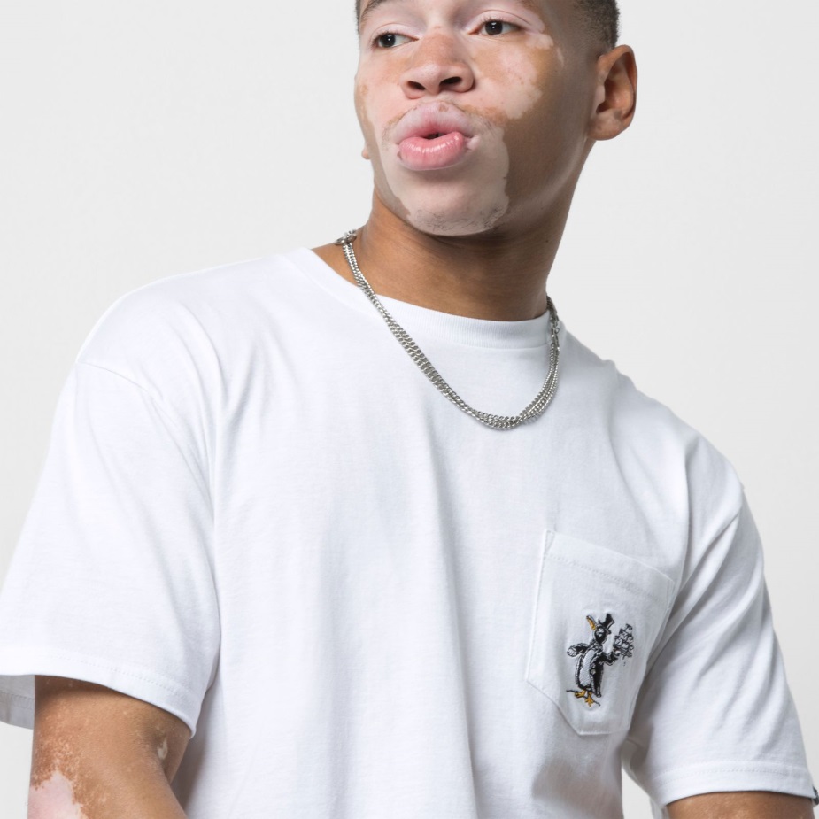 το σκακιέρα ερευνητικό μπλουζάκι είναι ένα βαρύτερου βάρους 100% λαναρισμένο βαμβακερό μπλουζάκι με κοντό μανίκι και αριστερή τσέπη στο στήθος με έργα τέχνης πιγκουίνους. Το μοντέλο έχει ύψος 6 πόδια και φοράει μεσαίο μέγεθος.