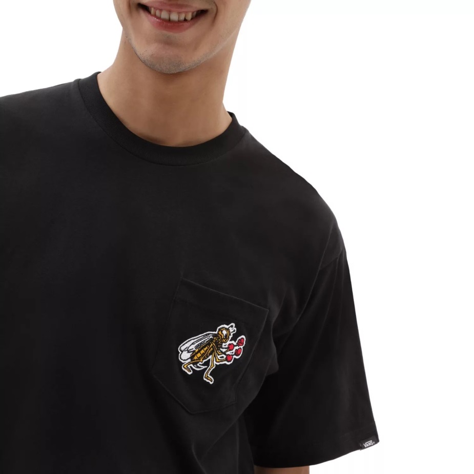 το μπλουζάκι έρευνας σκακιέρας είναι ένα 100% λαναρισμένο βαμβακερό μπλουζάκι με κοντό μανίκι και έργα τέχνης με μέλισσα στην αριστερή τσέπη στο στήθος.