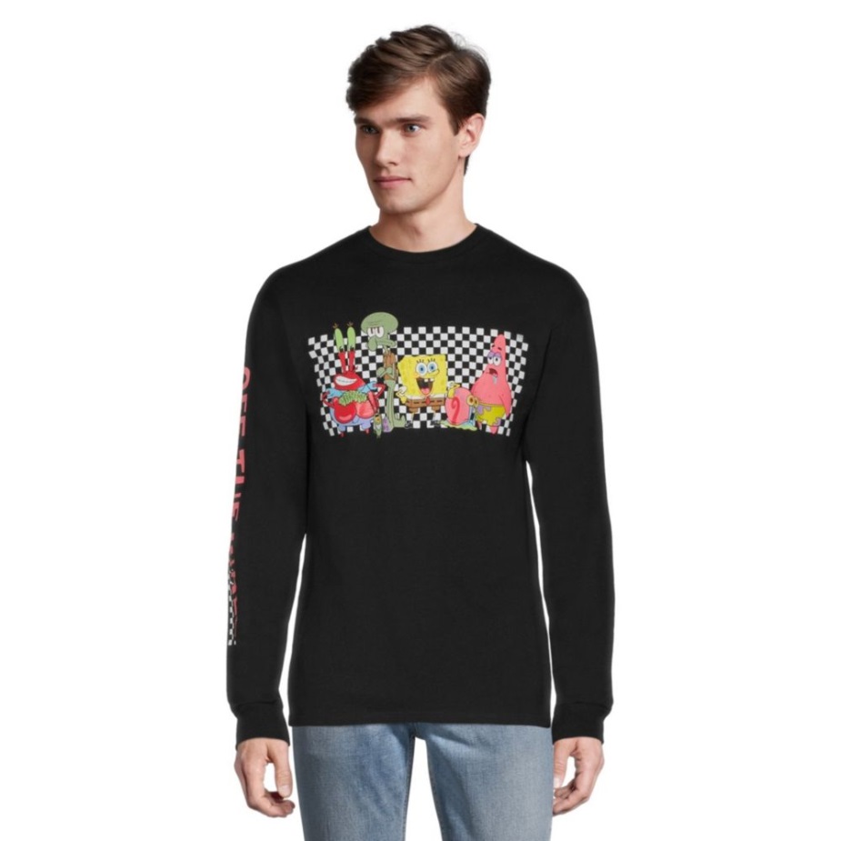 βαν ανδρικό μπλουζάκι με χαρακτήρες μπομπ σφουγγάρι μακρυμάνικο πλήρωμα λαιμόκοψη βαμβακερό Casual μαύρο