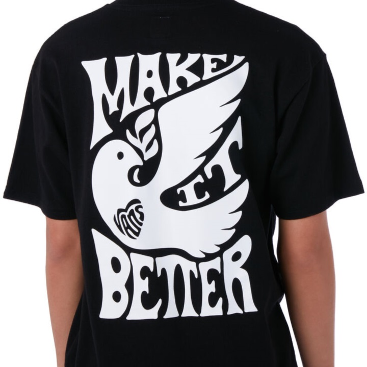 το μπλουζάκι Make It Better είναι κατασκευασμένο από 100% βαμβάκι και διαθέτει κοντά μανίκια, κέντημα με λογότυπο καρδιά στο αριστερό στήθος και γραφικά στο πίσω μέρος. τύπος εφαρμογής: λεπτός. Το μοντέλο έχει ύψος 6 πόδια και φοράει μεσαίο μέγεθος.