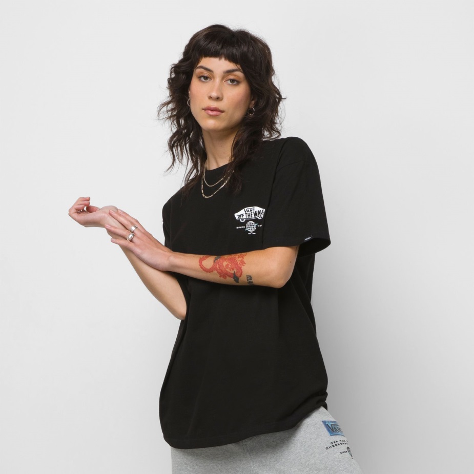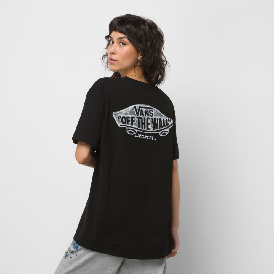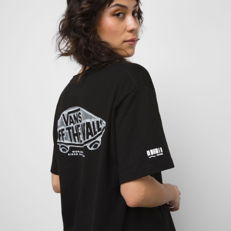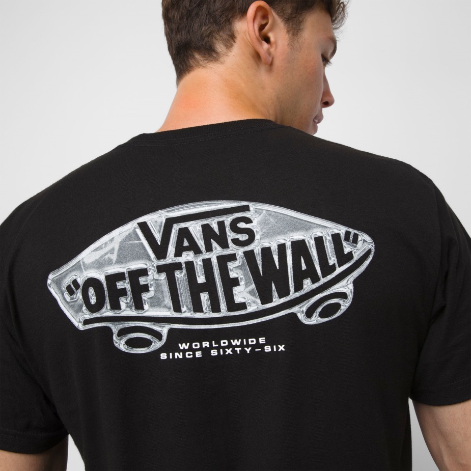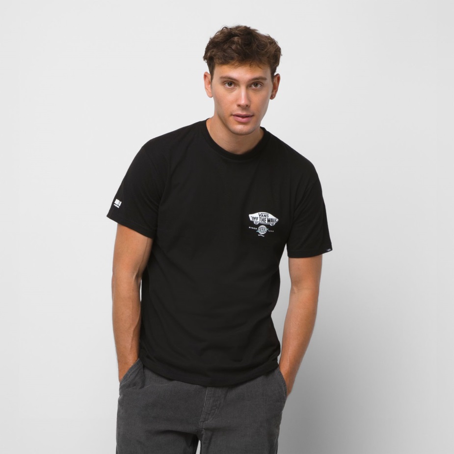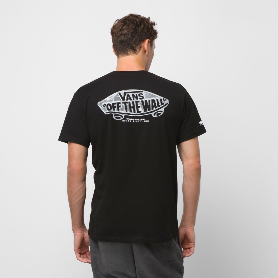 διάφορα λογότυπα σφραγίζουν το αριστερό στήθος, την πλάτη και το μανίκι του μετά το σκούρο μπλουζάκι. φτιαγμένο με πιο βαρύ βαμβάκι, αυτό το επώνυμο μπλουζάκι φέρνει μια αίσθηση "off The Wall" όπου κι αν πάτε.