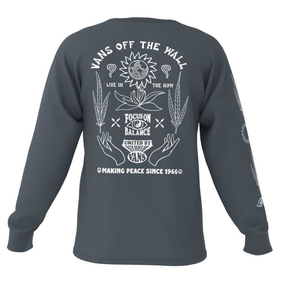 διαδώστε αγάπη και καλές δονήσεις με το Vintage μακρυμάνικο μπλουζάκι που κάνει την ειρήνη. Με γραφικά μπροστά, πίσω και στο μανίκι, αυτό το πιο βαρύ βαμβακερό μπλουζάκι πρόκειται να γίνει ένα νέο
