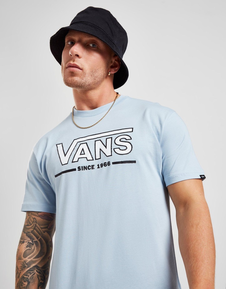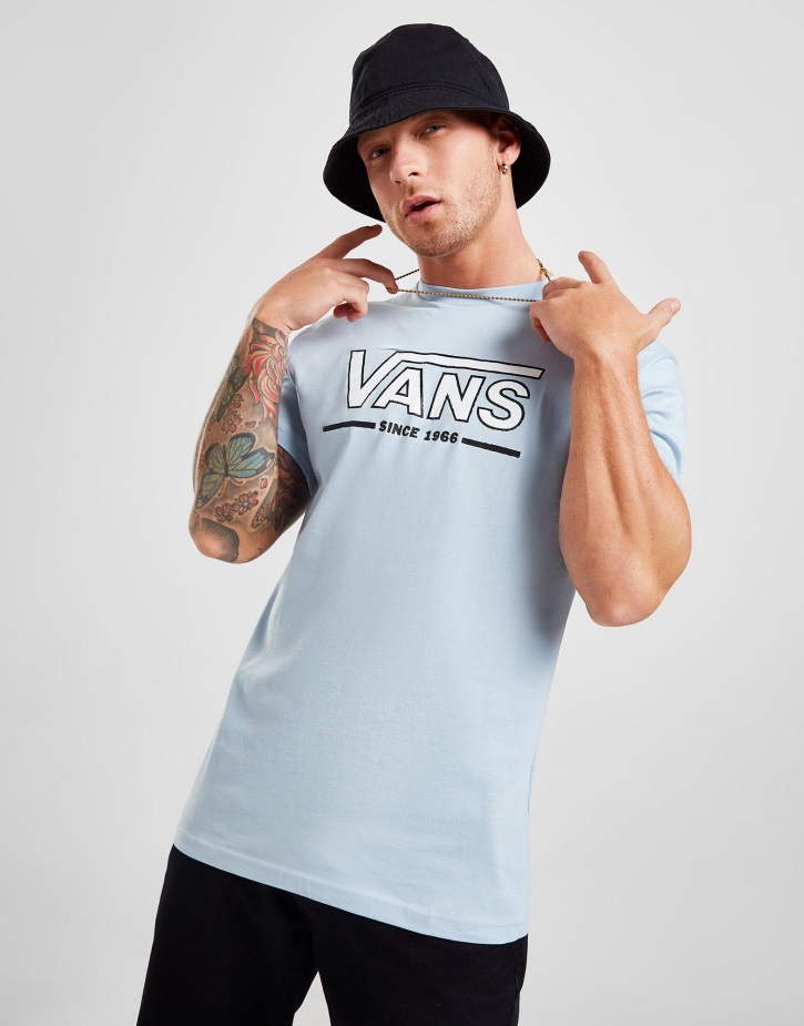 για εύκολη, καθημερινή άνεση, φορέστε αυτό το ανδρικό μπλουζάκι με ιπτάμενο V σκίτσο από φορτηγά. αποκλειστικά για Jd, αυτό το μπλουζάκι με κανονική εφαρμογή είναι κατασκευασμένο από απαλό βαμβακερό ύφασμα σε μπλε του ουρανού χρώμα. Διαθέτει λαιμόκοψη με ραβδώσεις και κοντά μανίκια. ολοκλήρωσε με το λογότυπο του Vans Flying V και την υπογραφή επωνυμίας. πλένεται στο πλυντήριο. | Το μοντέλο μας είναι 5'10" με στήθος 37" και φοράει μέγεθος Medium.care & Material100% Cottoncolour: Blue Code: 16592172/603157